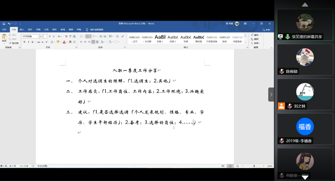11月28日晚7点,资环研会职业发展部承办的选调生经验交流会在腾讯会议线上顺利举办。本次分享会邀请了单渌铱、钱凯凯、张笑维三位去年考上选调生的师兄师姐做嘉宾进行分享,他们分别就职于杭州市西湖区北山街道办、上海市黄浦区委组织部、无锡市滨湖区发改委。三位嘉宾分别从不同方面介绍了自己的经验和想法。