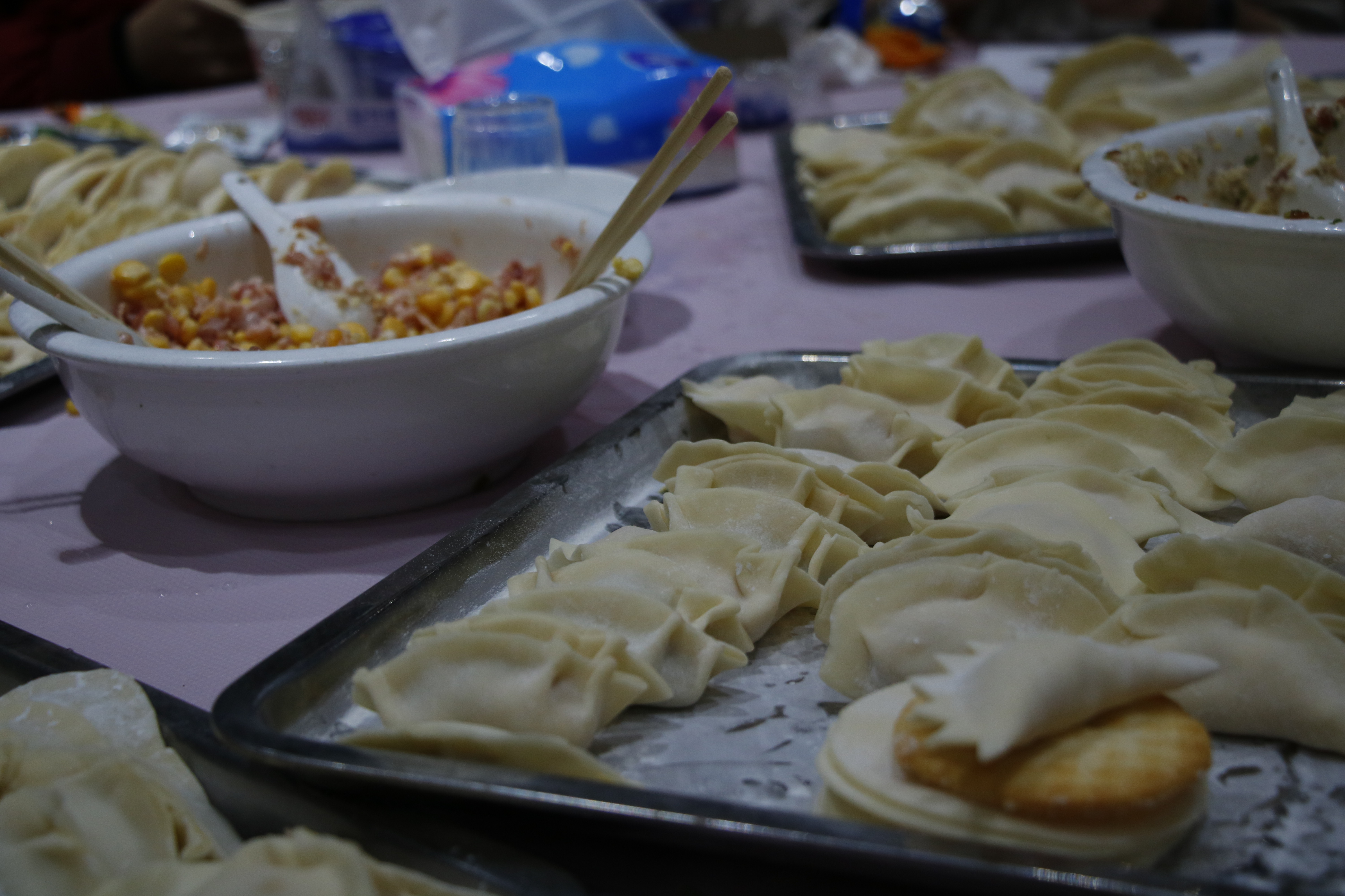 下午五点半,活动正式开始。各小组领取饺子皮,饺子馅,面粉等材料,围坐一桌,大显身手。大家各显其能,分工协作,个个动作娴熟,忙的不亦乐乎。让我们来回顾一下精彩瞬间。