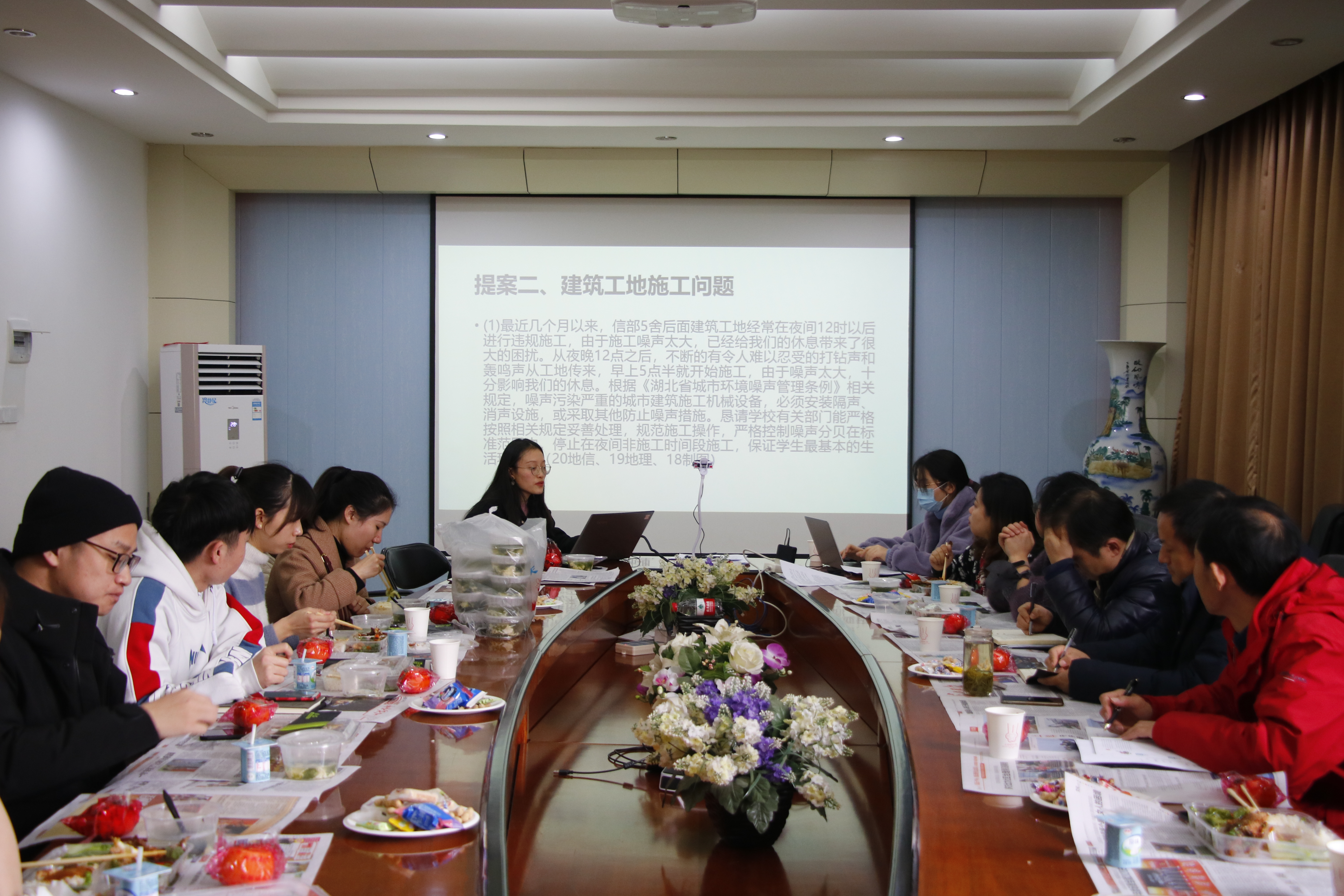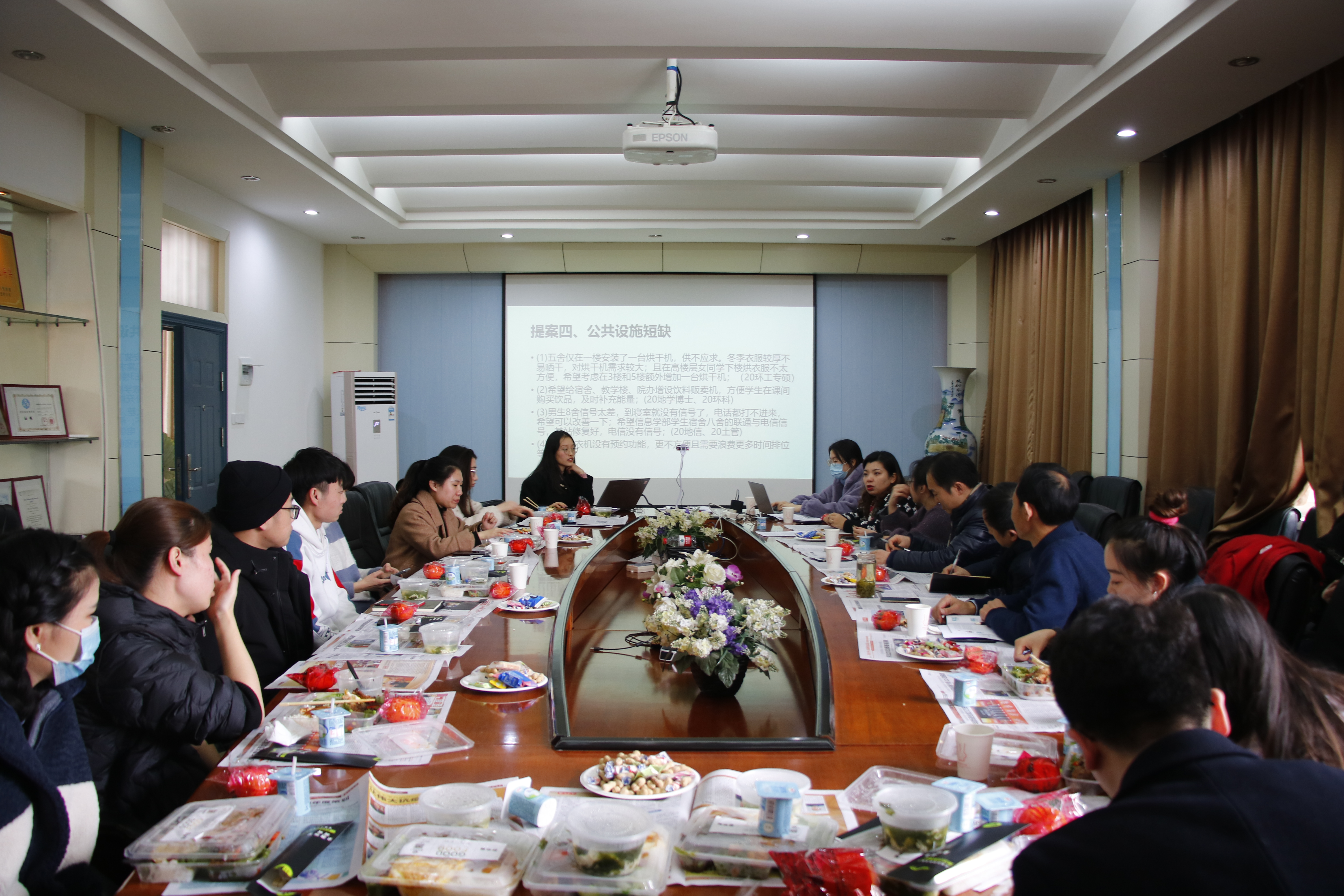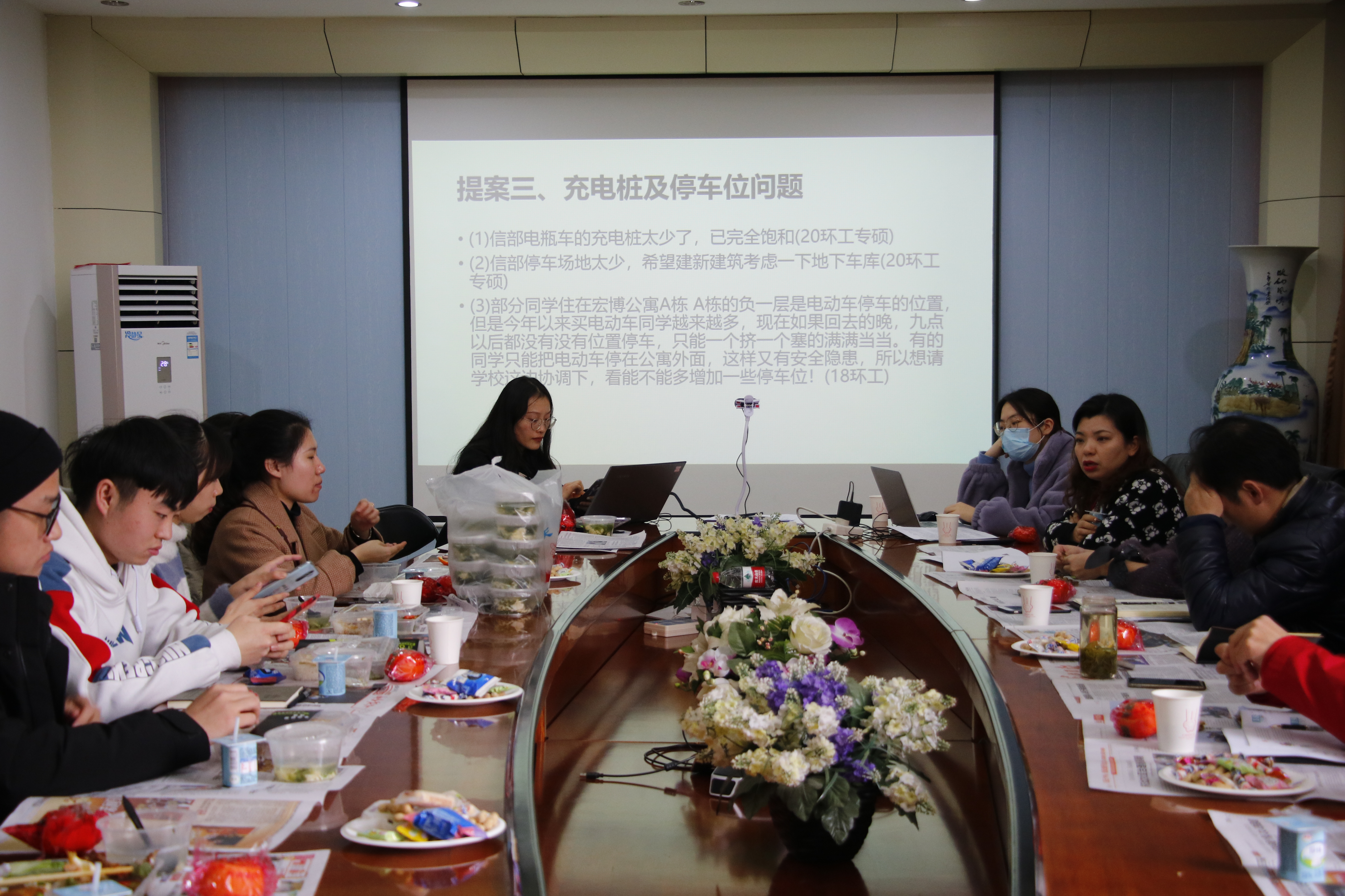 前期,院研究生会生活权益部门面向全院师生征集对校园生活的各类意见和建议。归纳整理后,热水供应、建筑工地施工问题、充电桩及停车位问题、公共设施、交通出行、基础建设等方面设立了内容真实、数据完整、逻辑清晰、需求明确的若干提案。各位院领导老师,分别就其中一些问题给出了解决办法的回应。