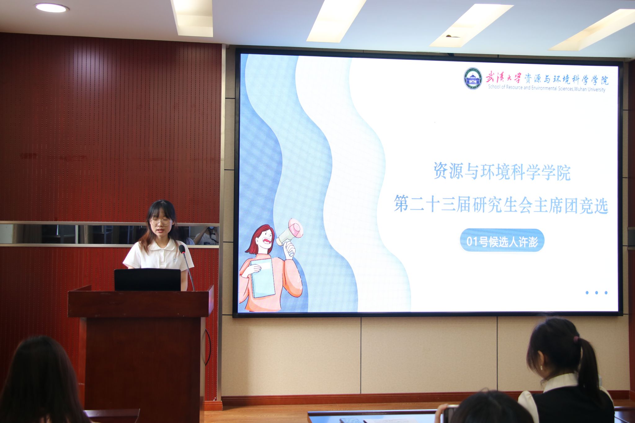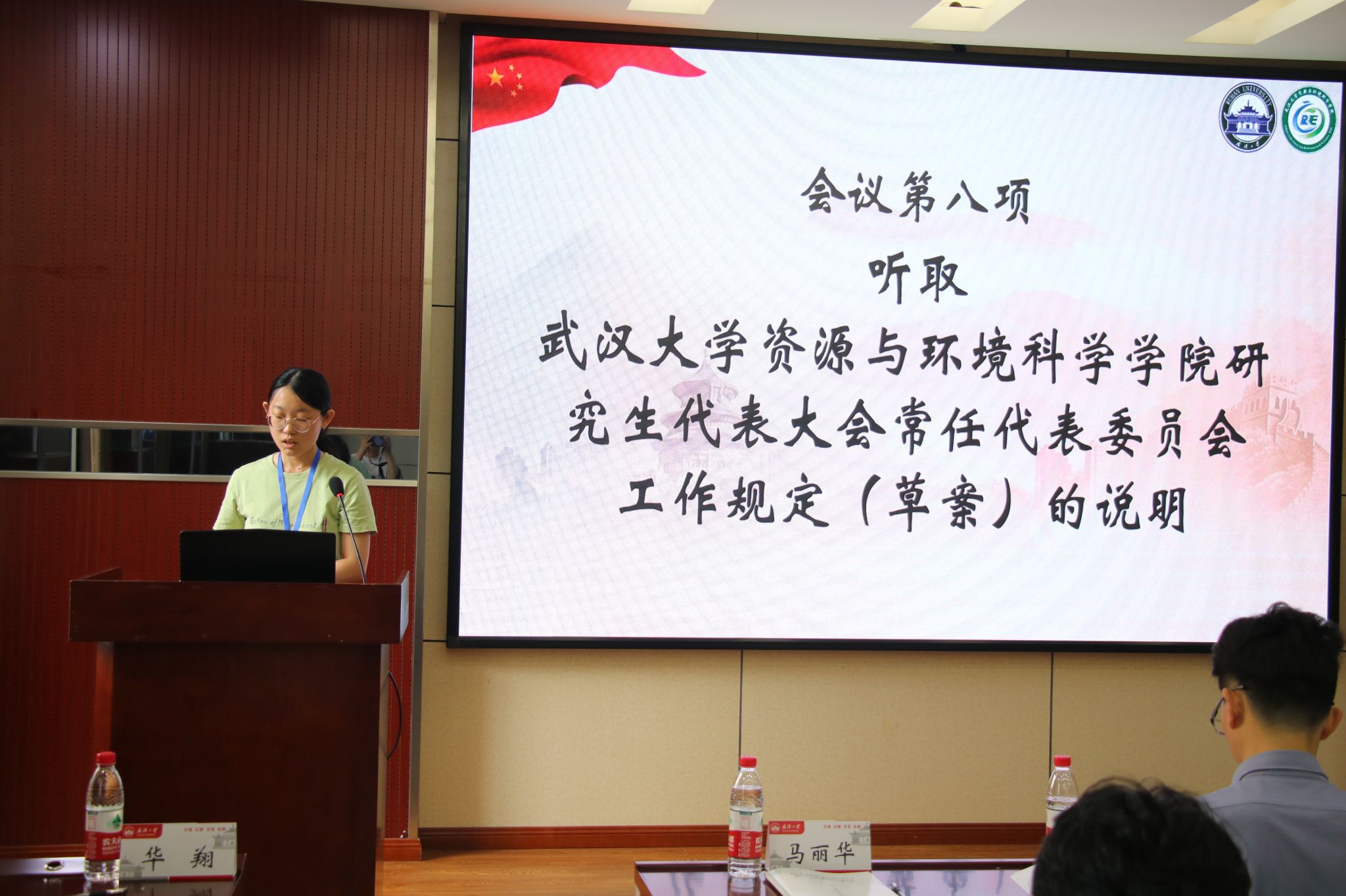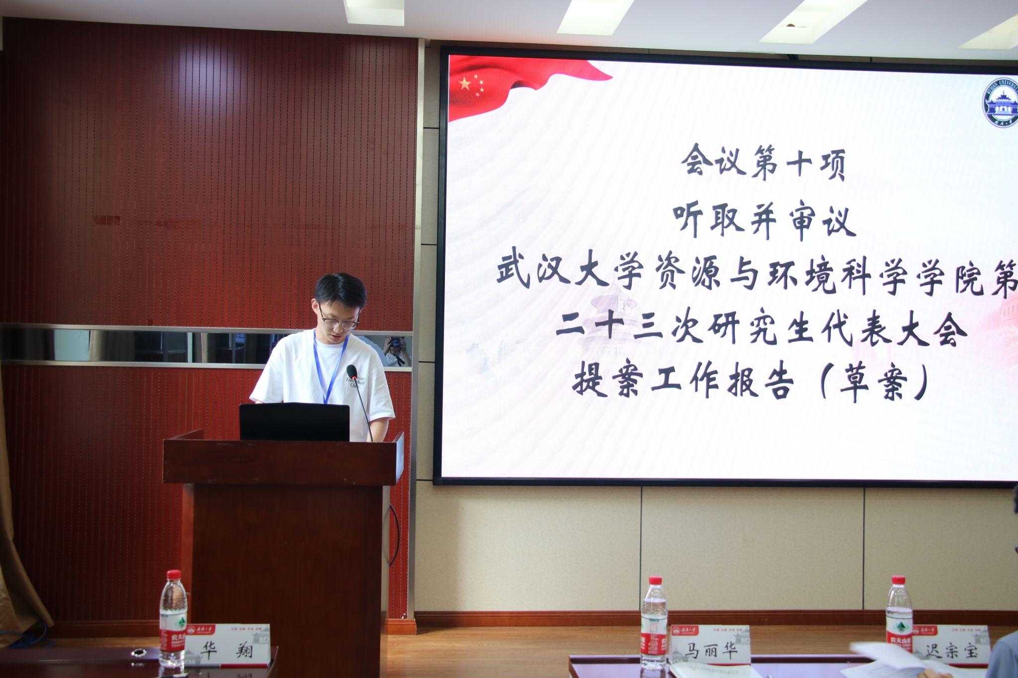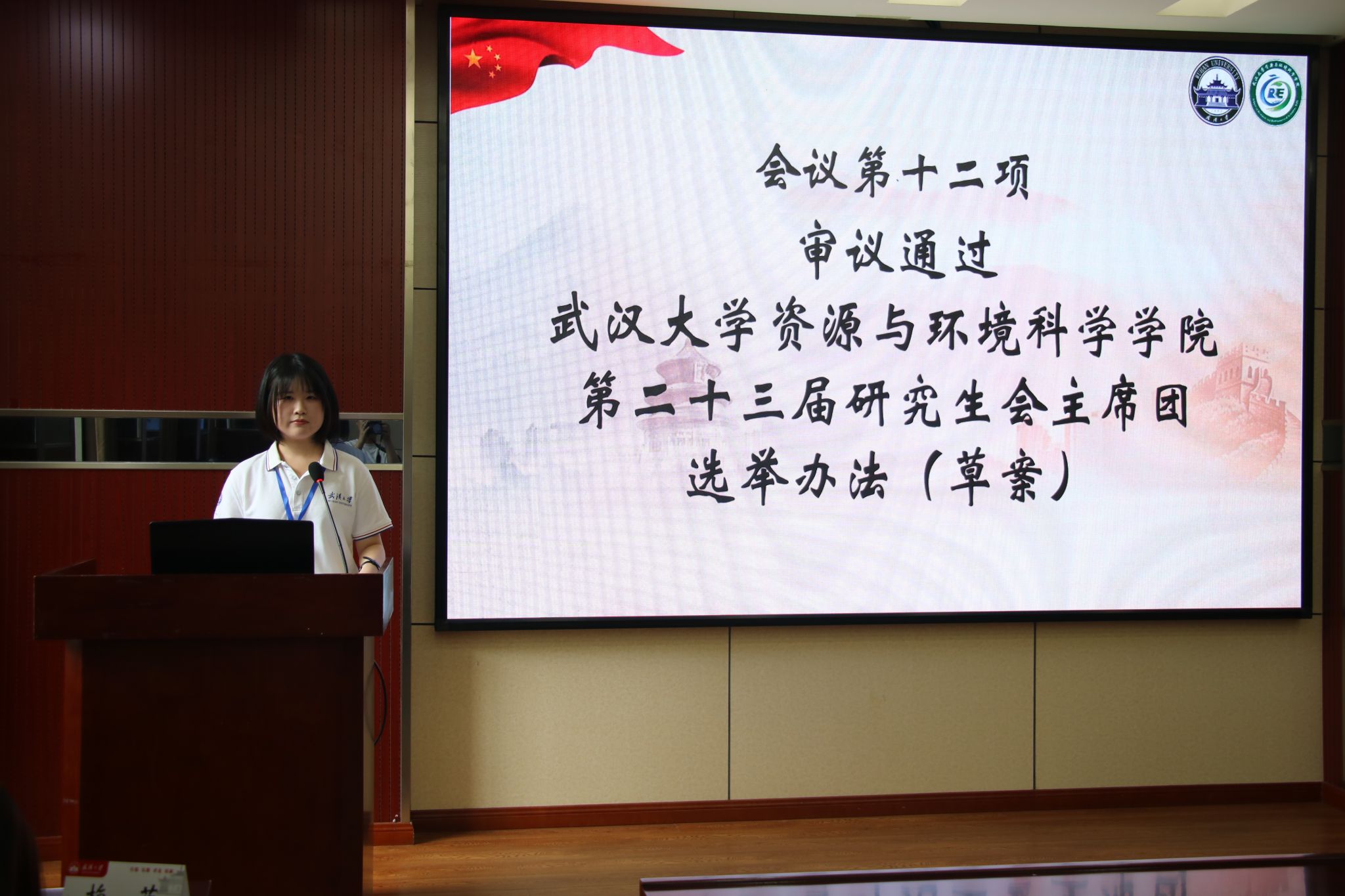 研究生会主席团成员钱乐希同学,以及各兄弟院系研究生会主席团成员出席本次会议,学院研代会代表参加会议。会议由资环院第二十二届研究生会主席团成员张敏主持。