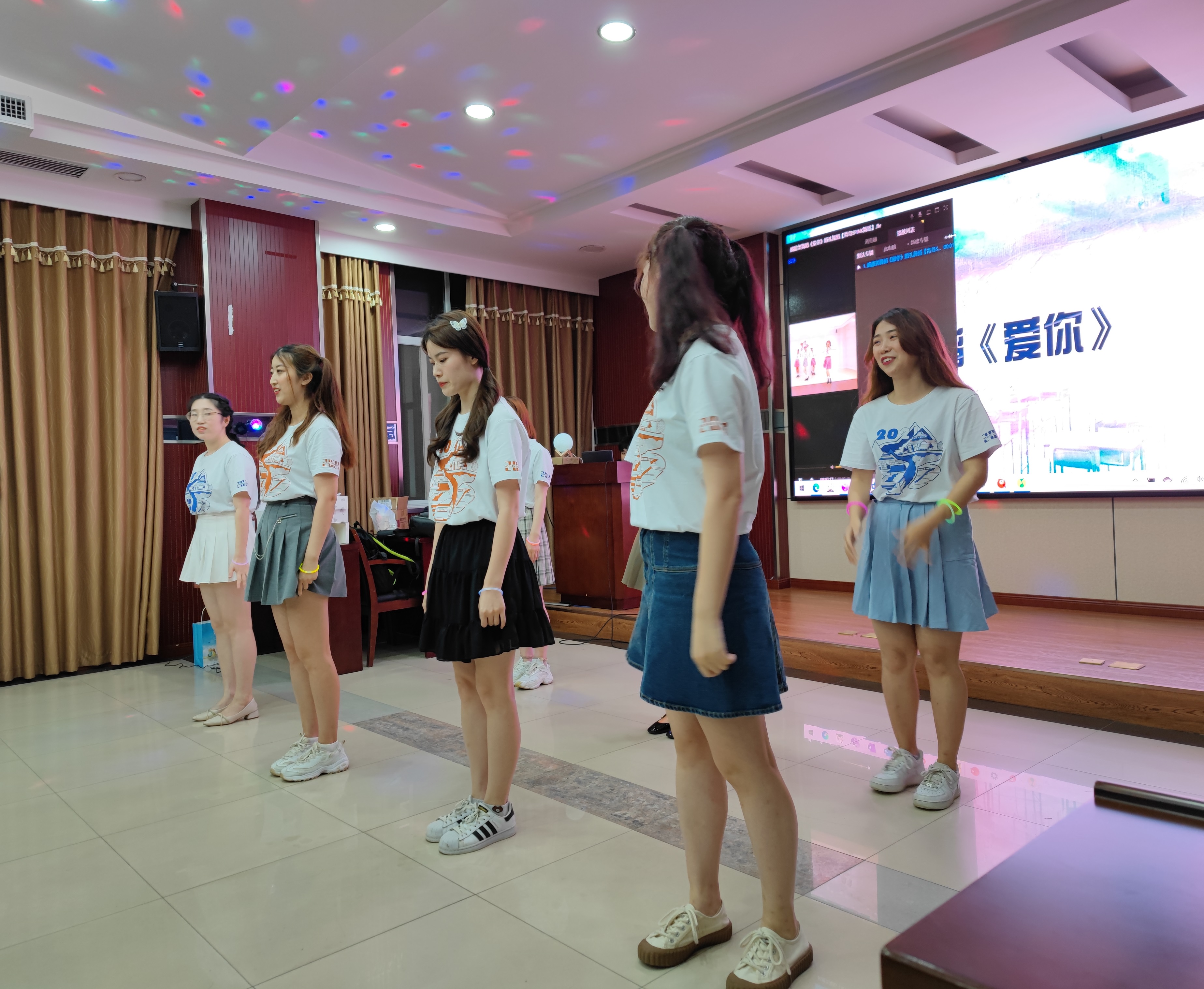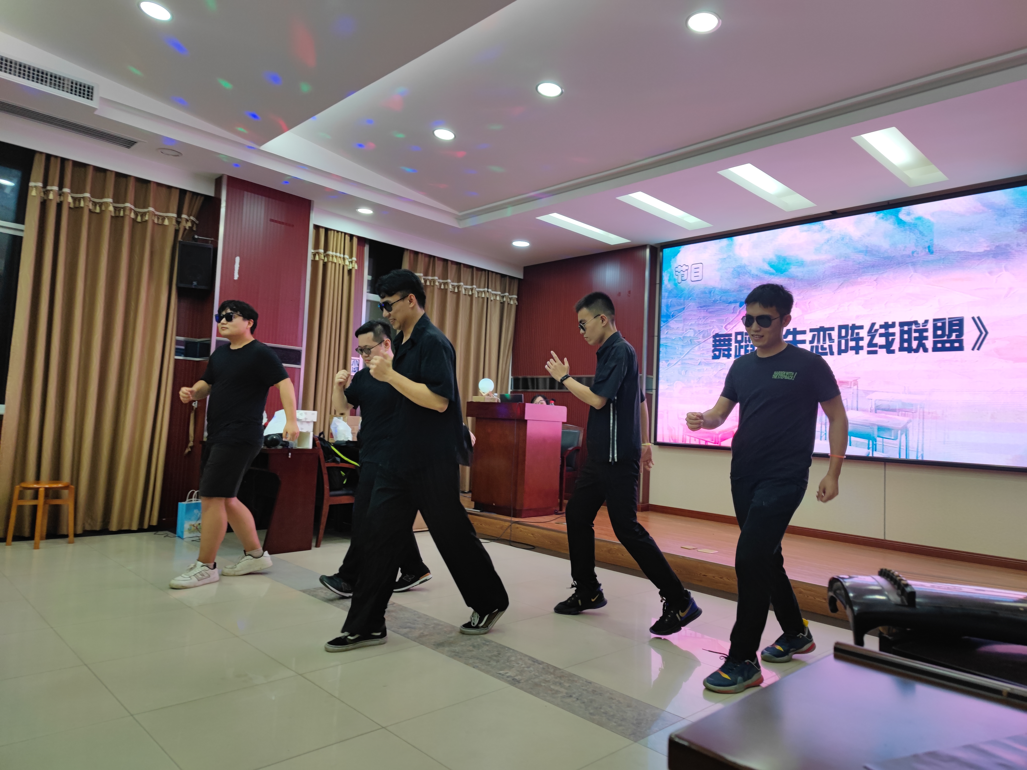 除了歌曲,舞蹈也作为了晚会的保留项目。课题组内女生在学习之余排练了一支集体舞蹈,在轻松欢快的音乐中舞动着自己的手脚,同样也舞动着青春的活力。整起的动作,划一的节拍,迎来了台下同学的阵阵掌声。