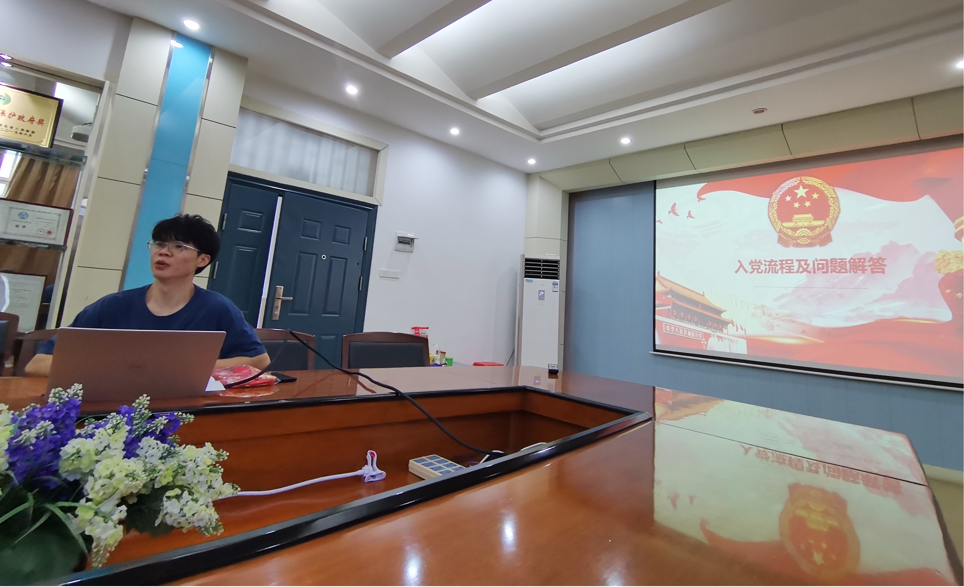 会议第二项,由苏会钰同志进行入党流程及问题解答。着重介绍了从递交入党申请书、成为入党积极分子、发展对象、预备党员到党员转正等一系列阶段中同志们需要进行的培训和考察以及各阶段的发展材料。