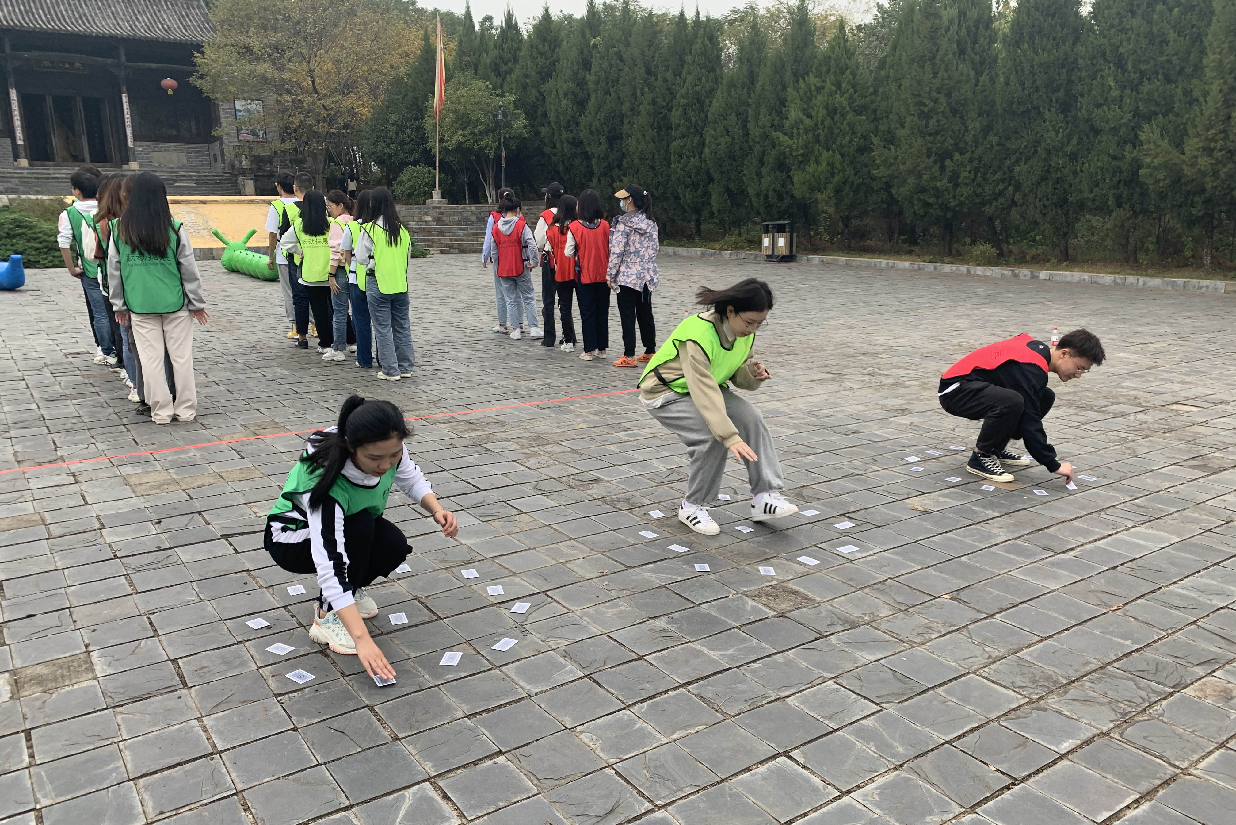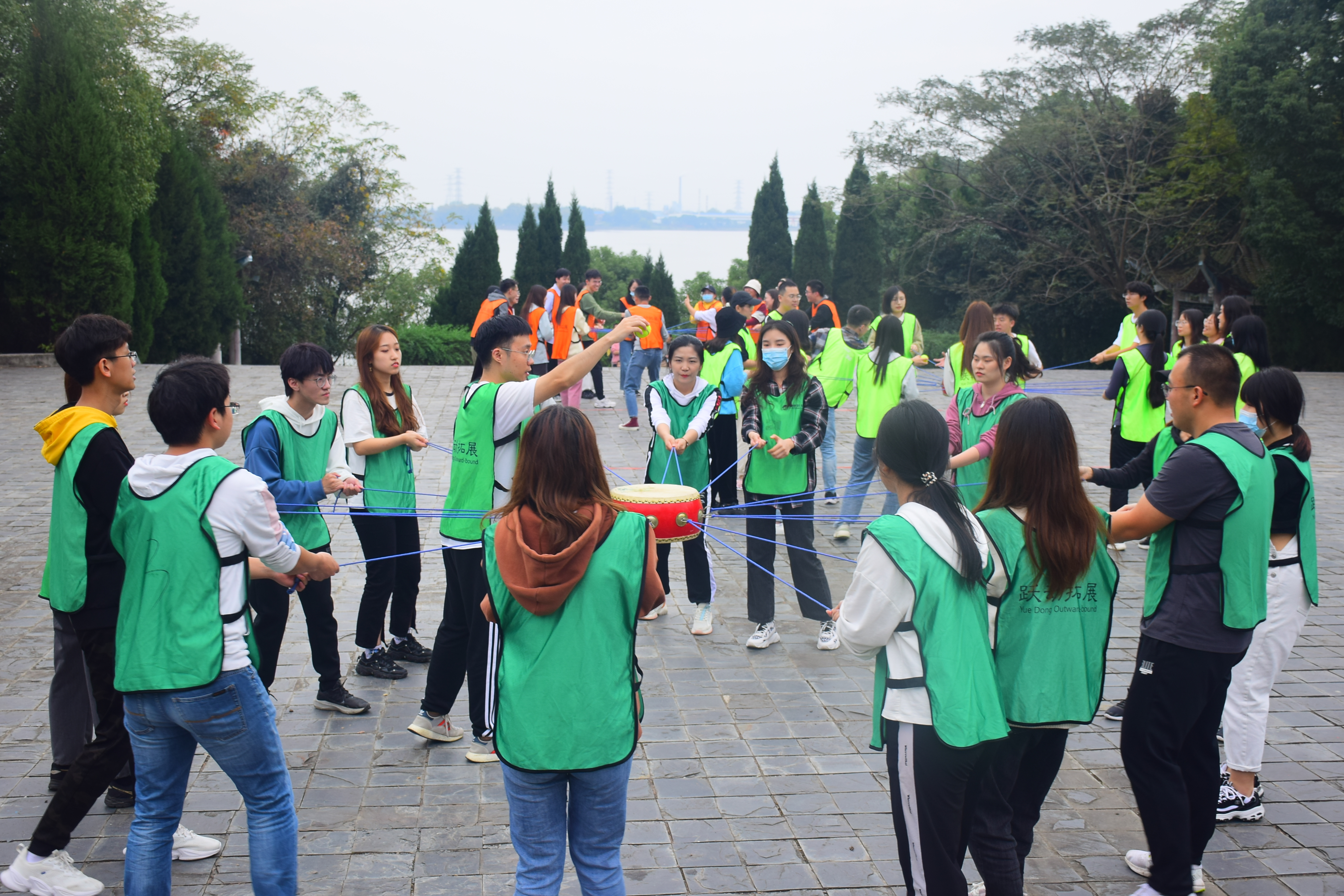 素拓活动正式开始,在教练的组织下同学们进行热身活动,并随机报号分成四支队伍,橙队“橘子汽水队”、绿队“忍者熊猫队”、黄队“好家伙队”、红队“街道口屠龙队”,四支队伍集思广益,各显神通,在队长的带领下进行了风采各异的队旗、口号创作与团队精神风貌展示。