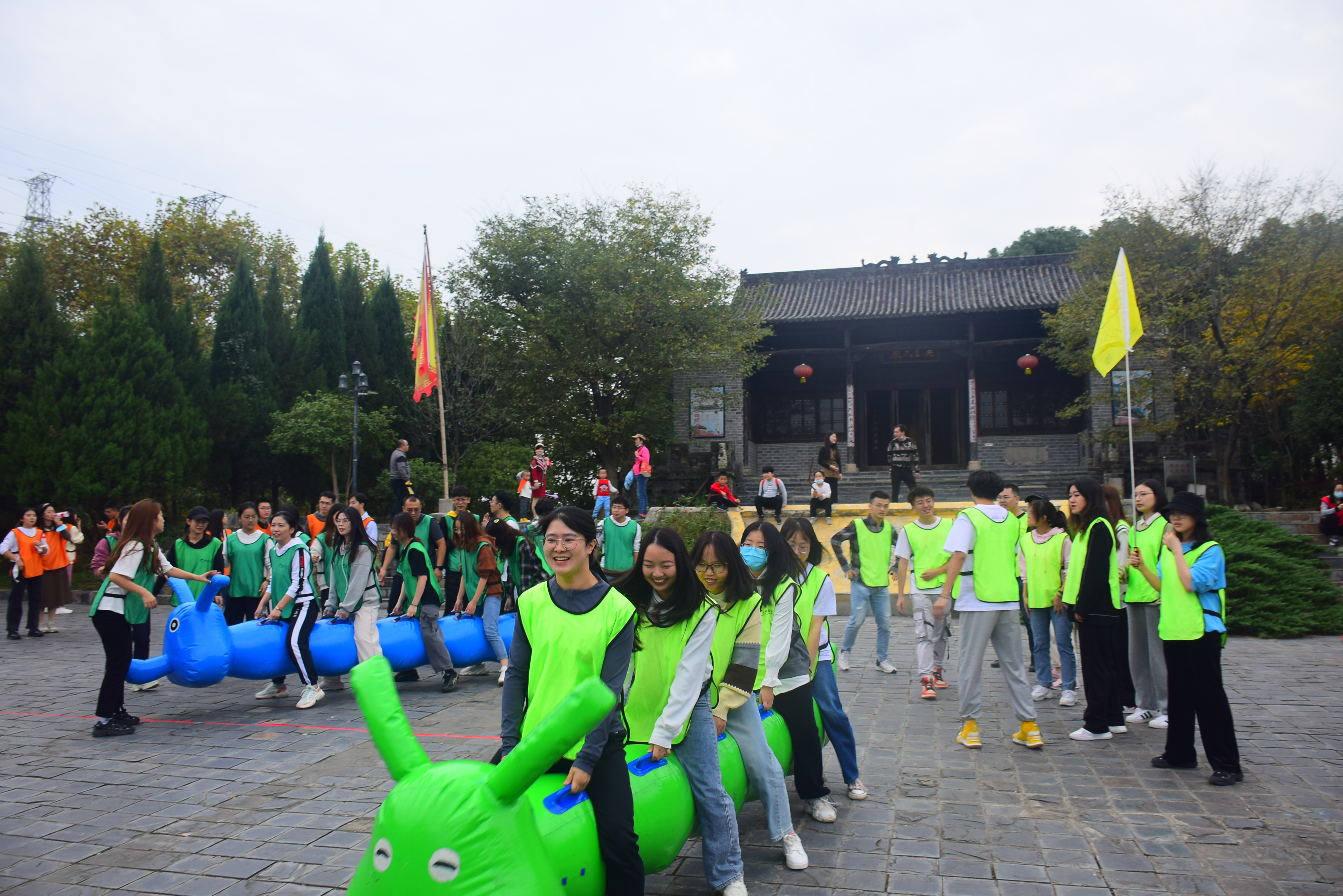 中午13点整,党团支部代表、研会骨干、研会未来学院学员集结完毕,本次活动共63人参加,大巴车载着对素拓活动翘首企盼的同学们来到了张公山寨景区。在素质拓展正式开始之前,教练带领所有同学们进行了破冰小游戏,让大家对身边的同学有了初步了解,很快拉进了彼此距离。