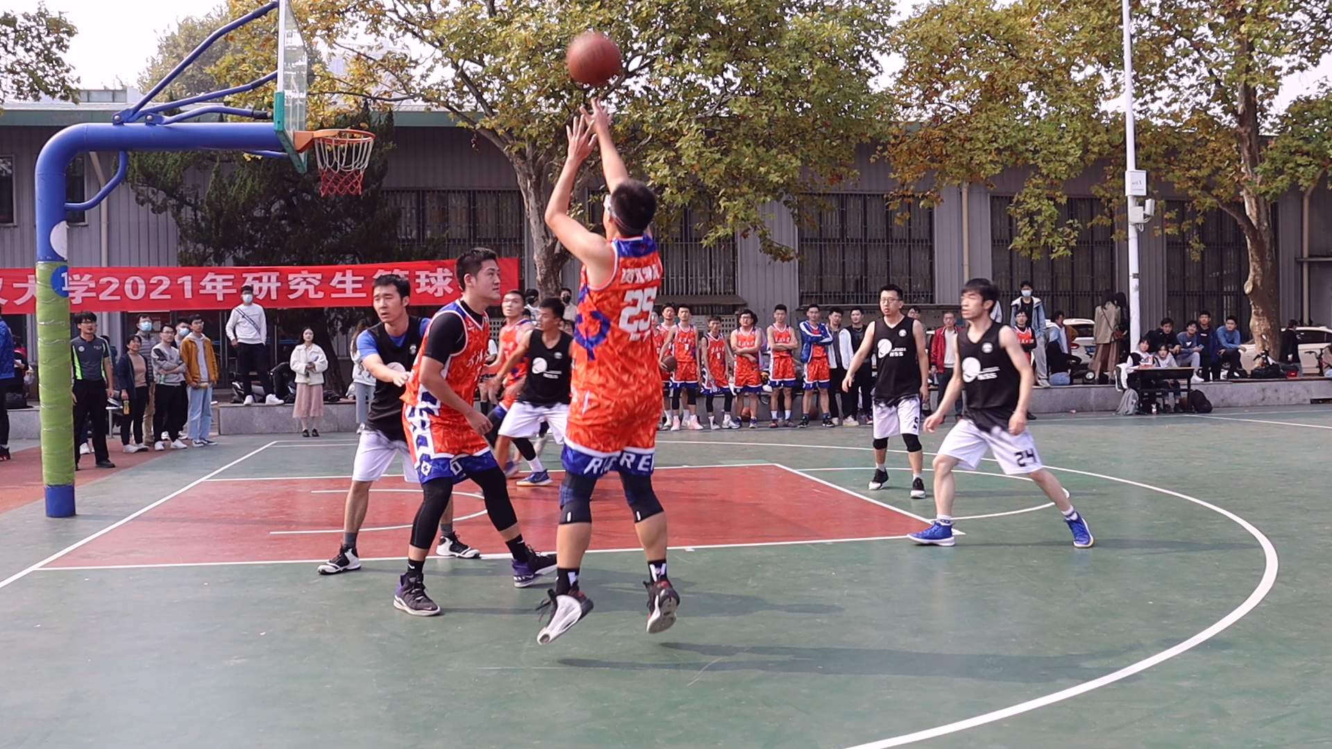 2021年研究生篮球赛于2021年10月26日正式开赛。本次参赛的36支队伍共分为8组进行小组赛选拔,每组前两名进入淘汰赛进行冠军角逐。