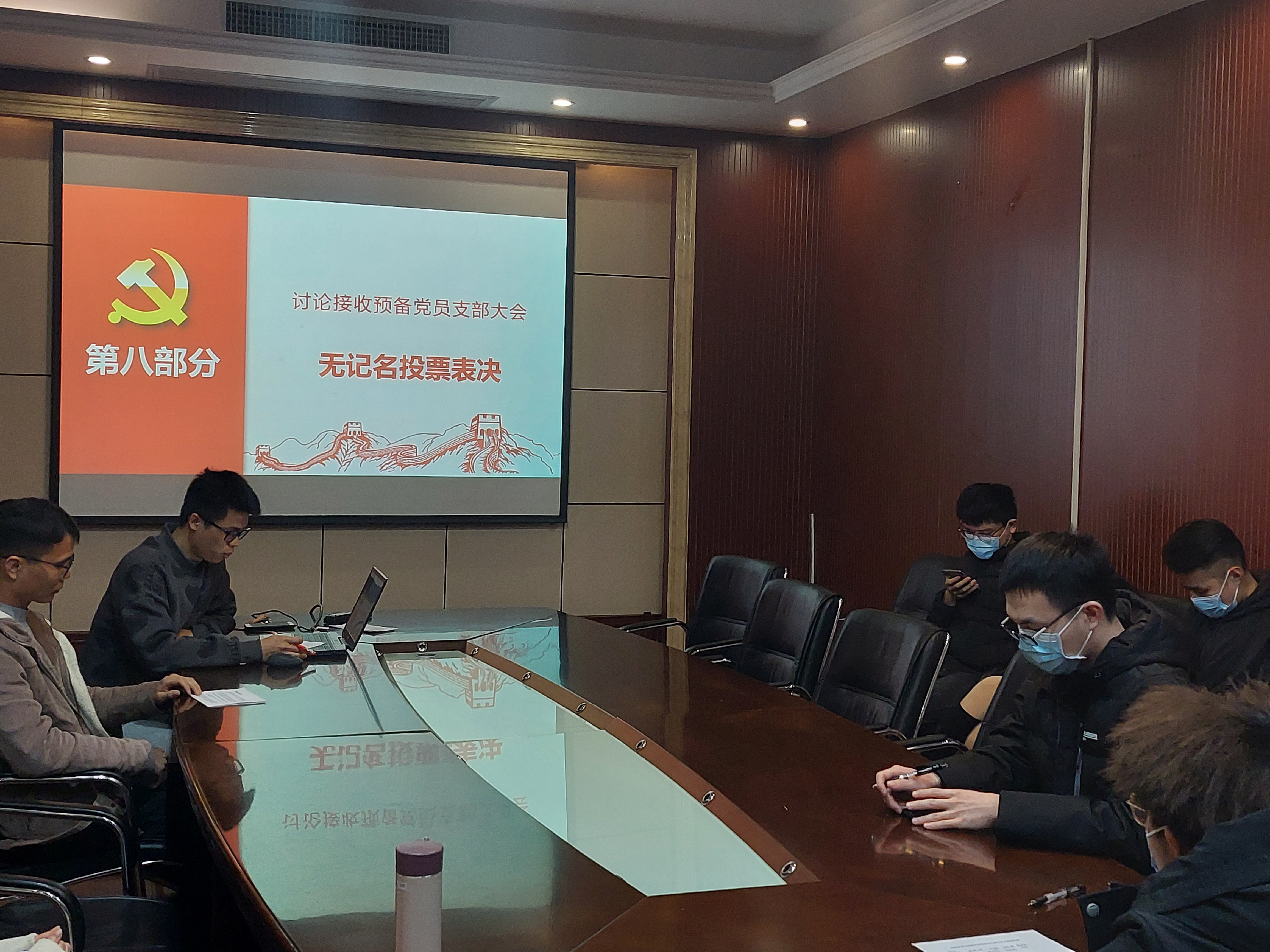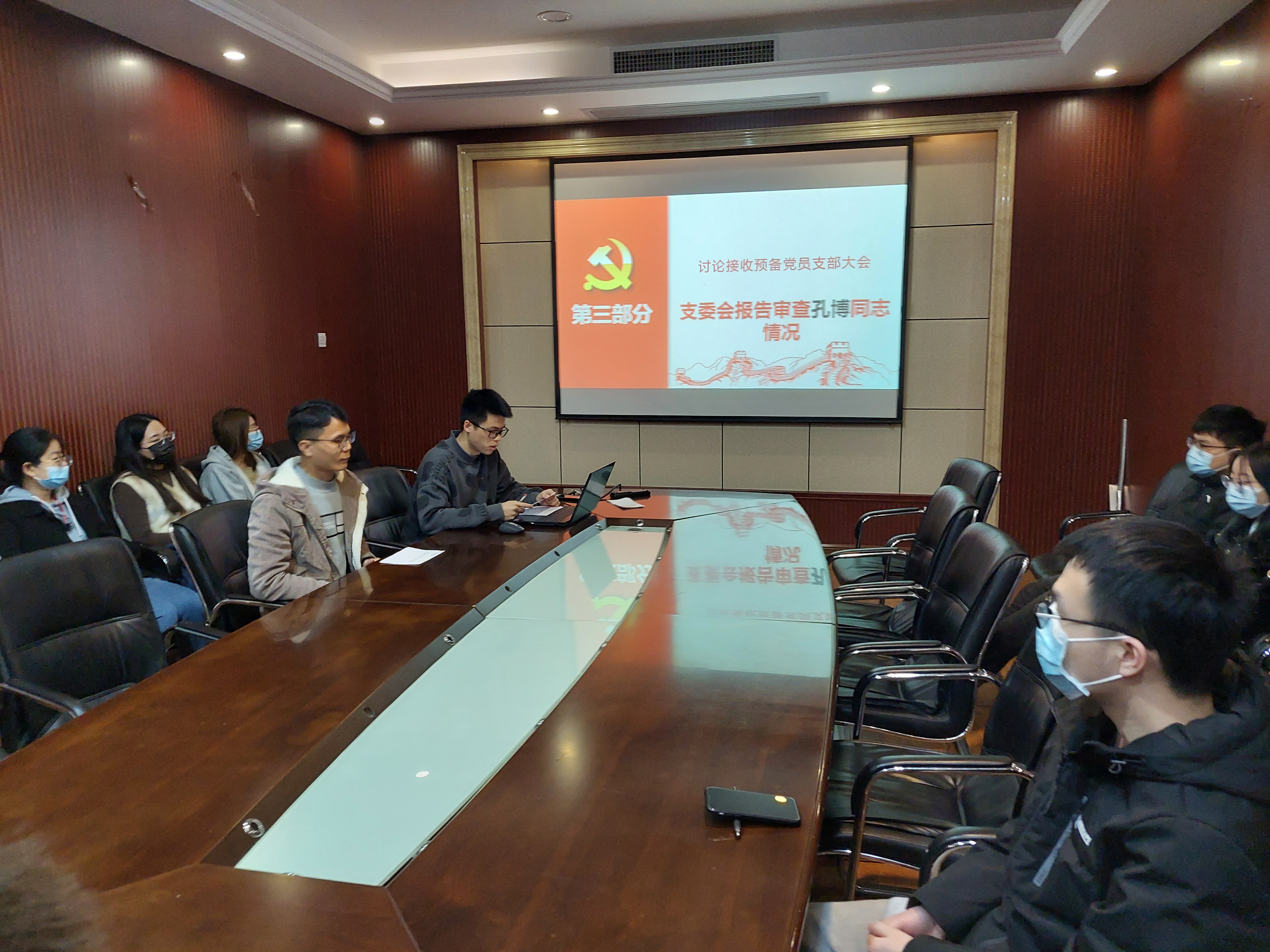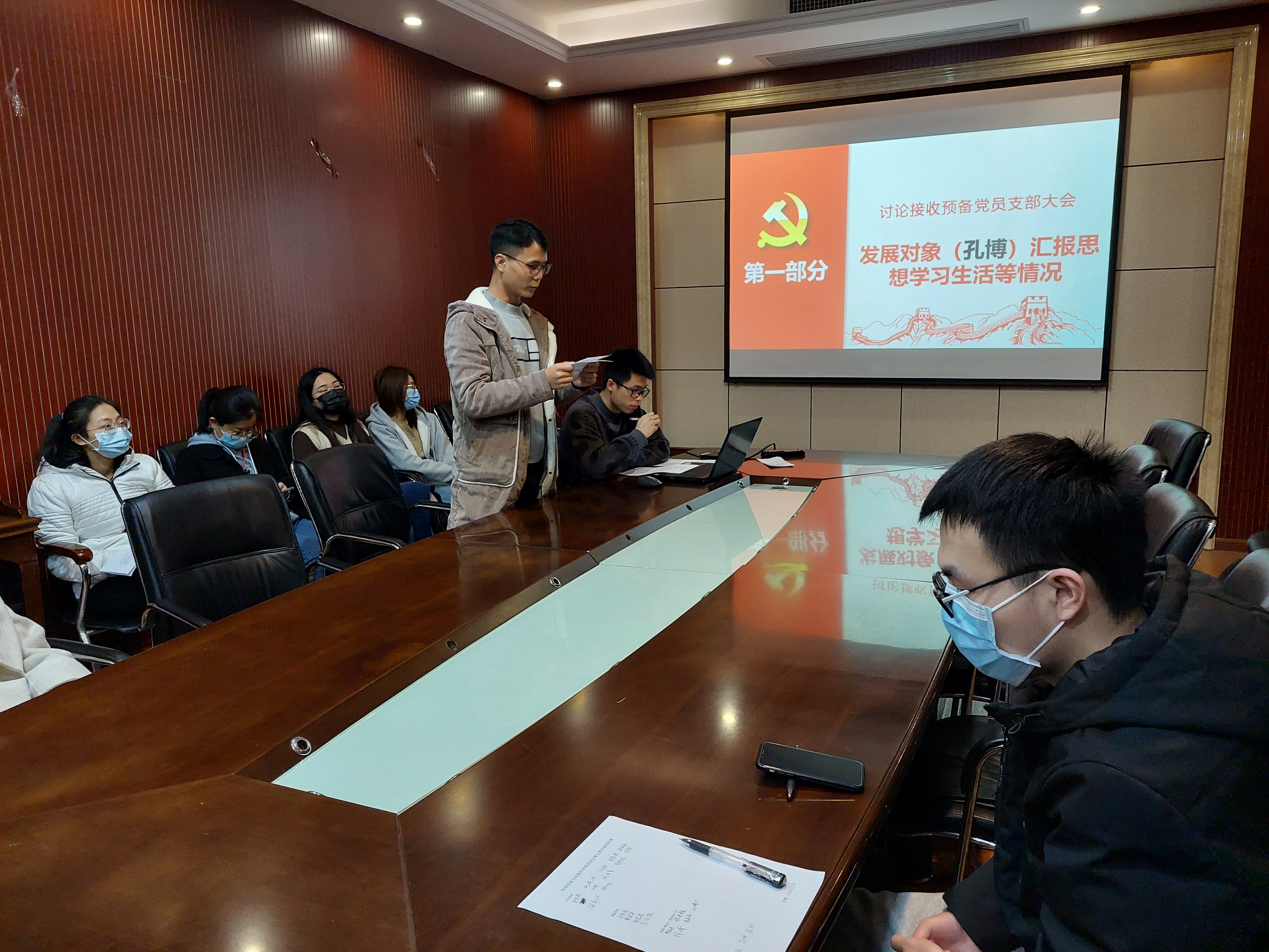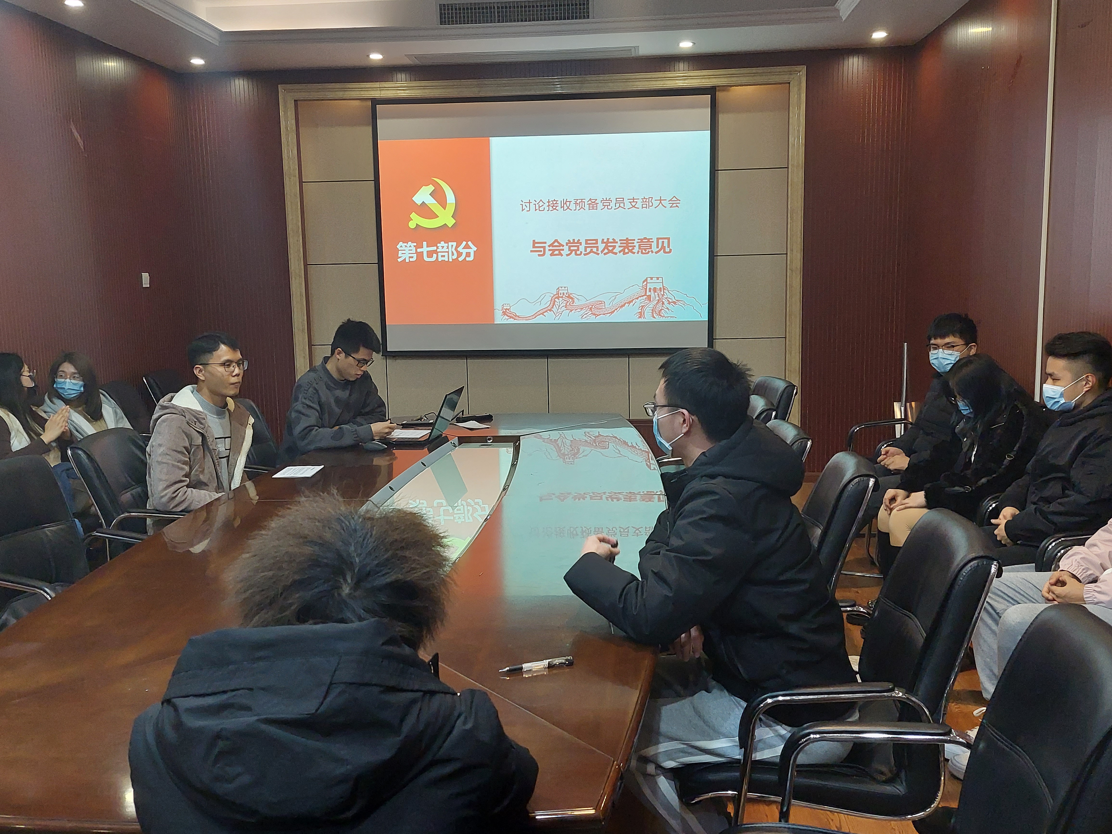 会议开始,由支部书记余华飞同志对本次会议的基本内容进行了介绍,主要为讨论林倩同志与孔博同志的预备党员接收。首先,林倩同志与孔博同志向组织汇报了自己在预备期间的工作学习情况,阐述了个人思想认识等方面的进步,表达了自身的发展意愿。