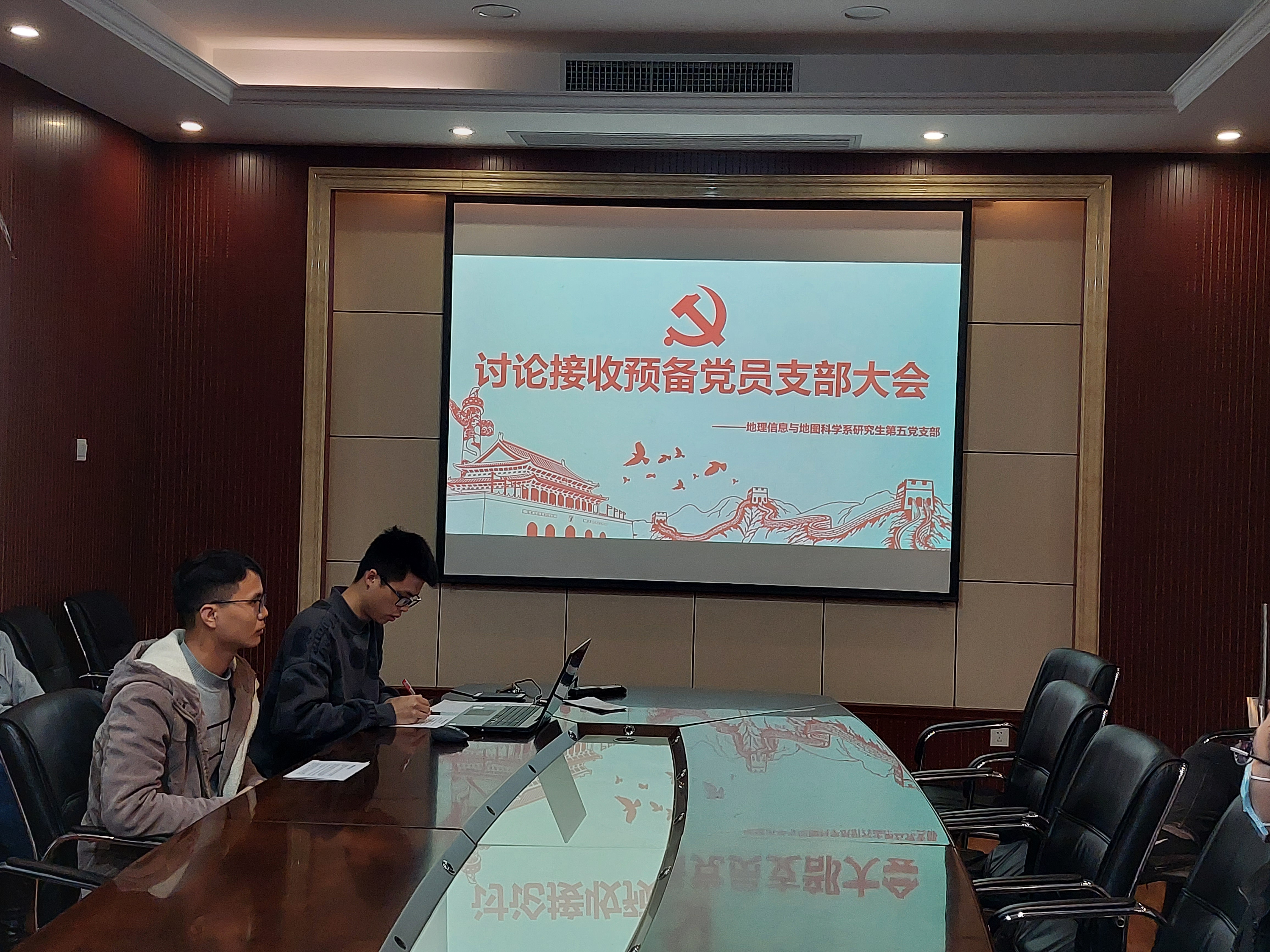 最后,林倩同志与孔博同志对本次会议的表决结果表达了自己的态度,向党组织表明了自己作为预备党员必将起到先锋模范作用的决心与信心,并表示自己将会在将来的学习生活当中,时刻谨记自己的党员身份,全心全意为人民服务,争取早日成为一名合格的共产党员。至此,本次地理信息与地图科学系研究生第五党支部接收预备党员支部大会到此结束。