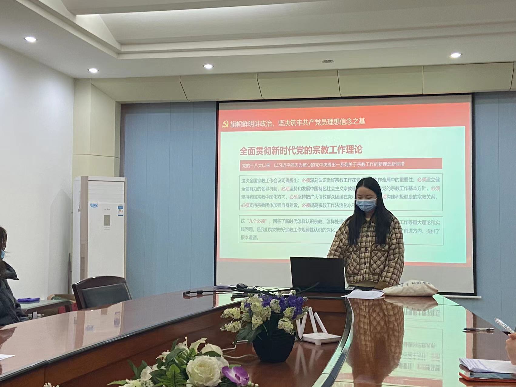 会议最后一项,由党支部书记焦丹同志带领大家进行了“共产党员不得信仰宗教”主题学习,焦丹同志从共产党员为什么不能信仰宗教以及全面贯彻新时代党的宗教工作理论两方面开展了本次主题教育。焦丹同志指出,共产党员不准信仰宗教,这是党的政治纪律,是由党的理想信念决定的,是我们党区别于大多数政党的一大特点。我们应该树立马克思主义宗教观,坚持我国宗教中国