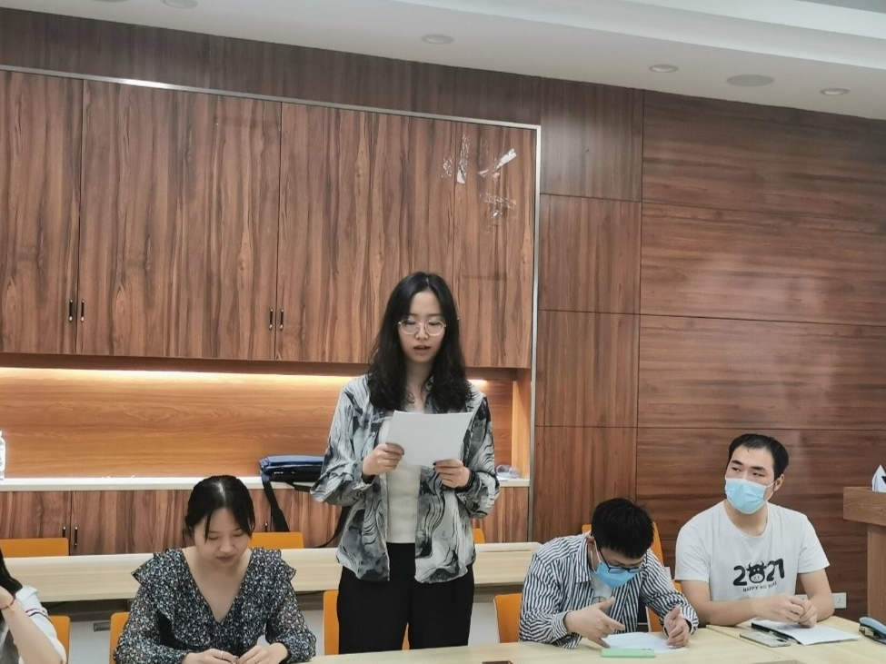 发展对象廖佳君同志、黄煦原同志、叶蕾同志汇报对党的认识、入党动机、本人履历、现实表现,以及需向党组织说明的其他问题。黄煦原同志的入党介绍人赵冲、王卓伦同志介绍黄煦原同志的基本情况,廖佳君同志的入党介绍人沈铃英、张梦同志介绍廖佳君同志的基本情况,叶蕾同志的入党介绍人包雨睿、孙晴萱同志介绍叶蕾同志有关情况。入党介绍人对三位同志能否入党表明了意见。之后,组织委员辛成同志代表支部委员会报告对三位同志的审查情况,与会党员发表意见,对廖佳君同志、黄煦原同志、叶蕾同志能否入党进行充分讨论。与会党员依次对发展对象能否入党进行无记名投票表决。
