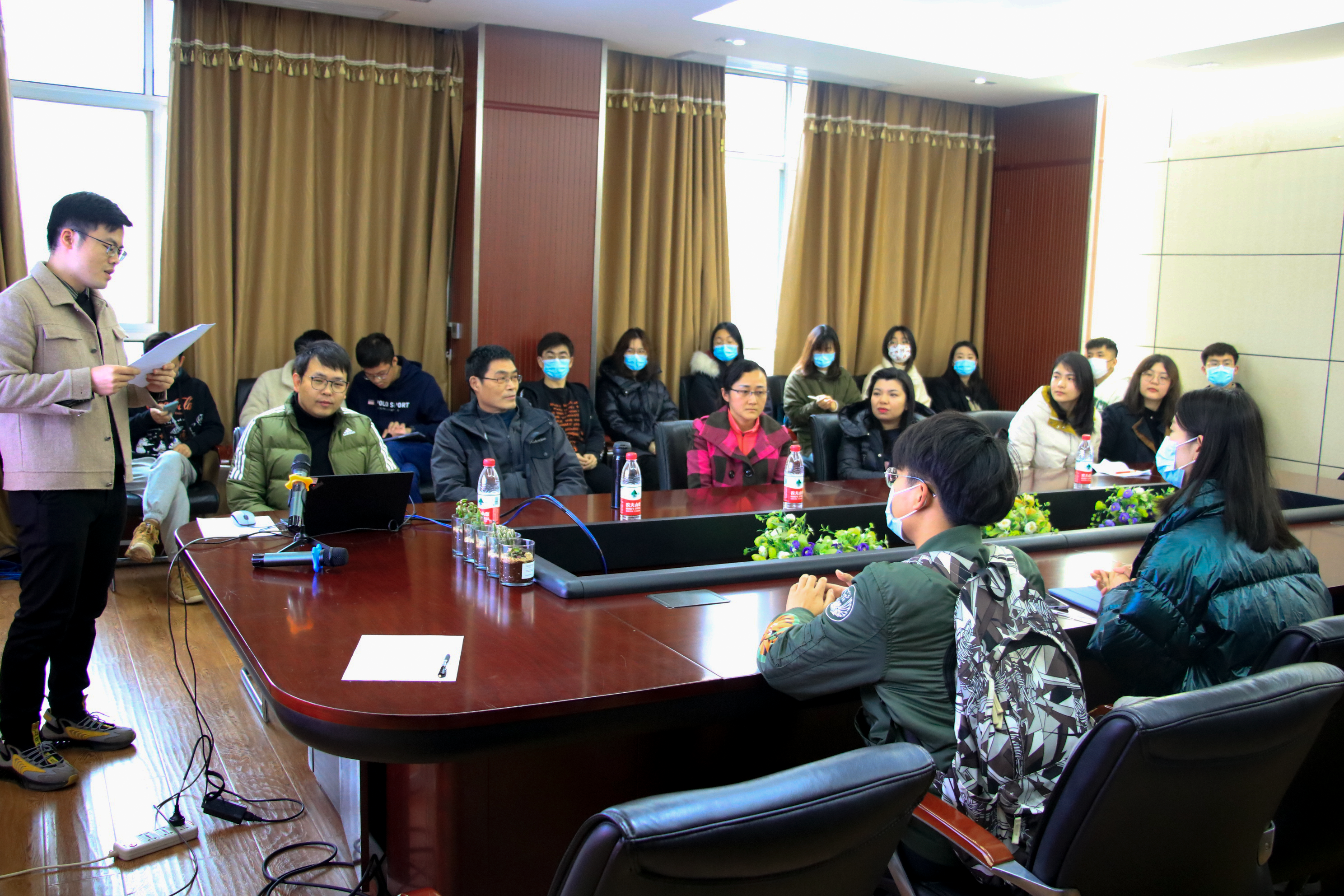 园林中心高级工程师何建农、学院党委副书记马丽华、研究生辅导员梅菲、李韩、博士生宣讲团讲师李轶男、周初以及学院各研究生党支部代表。活动由学院党支书联席会副主席郑传帮主持。