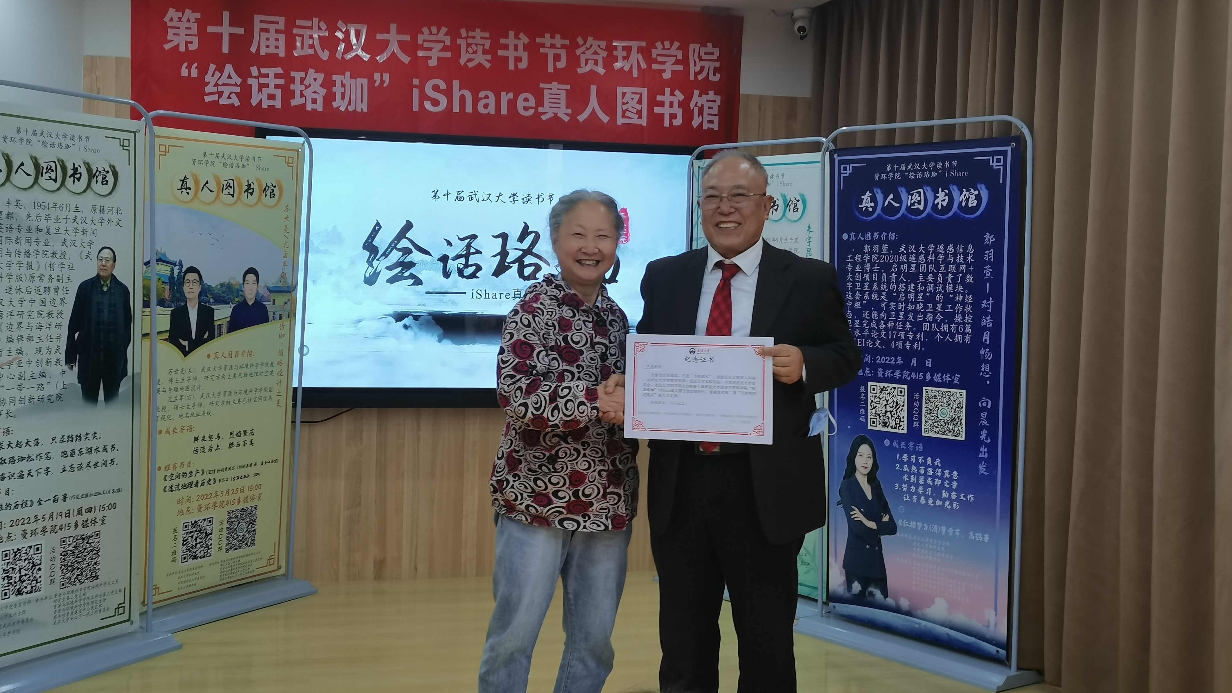 活动伊始,活动嘉宾分别为本届真人图书分享者颁发纪念证书。本届真人图书馆聚焦珞珈“科研、创新、求知、奋斗”四大精神,分别邀请《漫步珞珈地图集》主编团队、中国首颗“学生造”遥感卫星团队、澳门美高梅