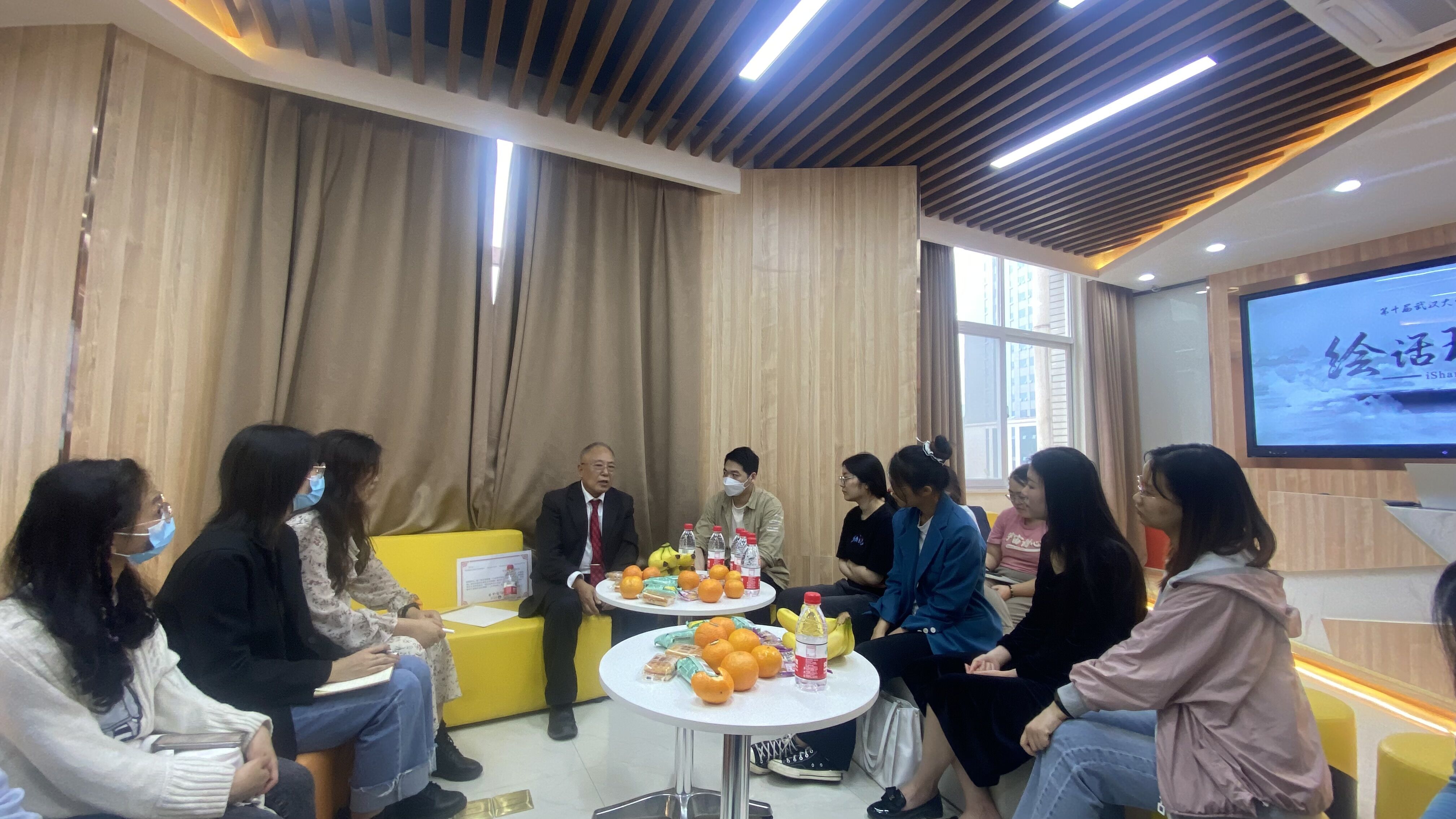接着同学们围坐一圈,开始了第一期的主题分享。新闻与传播学院教授车英以“当理想照进现实”为主题,结合自己的人生经历和大家分享了奋发读书、结缘书法、下乡历练的点点滴滴。车教授以饱满的情绪绘声绘色地讲述他的青葱岁月,席间金句频出,“谈笑风生显知识,指点江山靠学问”、“轻取珞珈松做笔,饱蘸东湖水成书”、“学而知之知古知今知世局,校以教之教忠教孝教爱国”,他言传身教,鼓励青年学子发奋读书,把握时光,放飞青春。