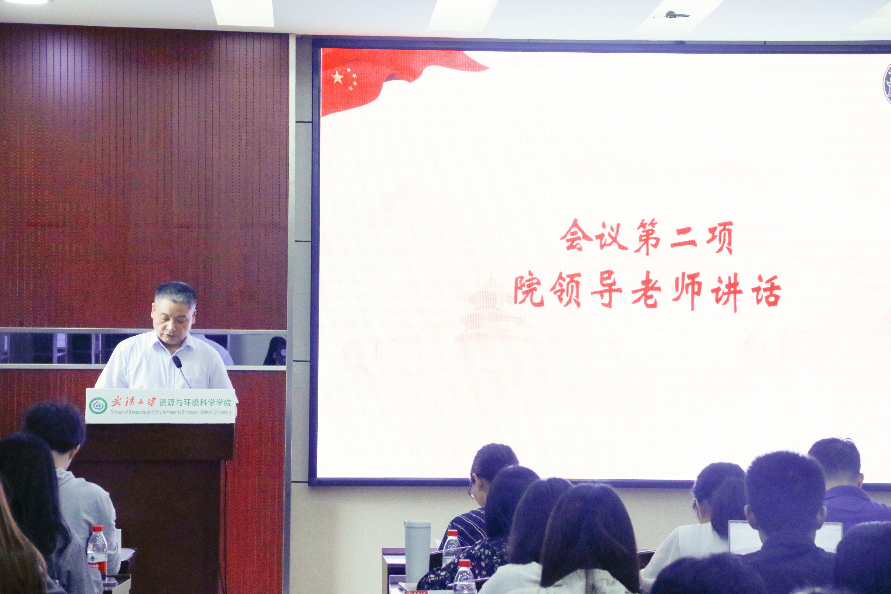 团委副书记徐芳琳老师致辞。徐书记首先对资环研会的工作给予了赞扬,为学院研究生工作汇聚了青春正能量,在全校范围内也塑造了资环研究生的良好形象。在新时代学联学生会改革走向深入的大背景下,校院两级研究生会也承担了更大的责任。徐书记也将自己关于研会的三点感想与大家进行了分享:第一,必须把牢政治方向,凝聚广大青年学生;第二必须提高改革攻坚能力,进一步增强研究生会的组织力与战斗力;第三必须坚持从严治会,塑造新时期研究生会良好形象。徐书记指出,今年是中国共产主义青年团成立100周年,同时也即将迎来党的二十大胜利召开,希望各位同学可以不断铸牢对党忠诚的政治品格、高扬理想主义的精神气质,深刻领会习近平总书记在庆祝中国共产主义青年团成立100周年大会上的重要讲话精神,创造出无愧于时代、无愧于青春的光辉业绩。