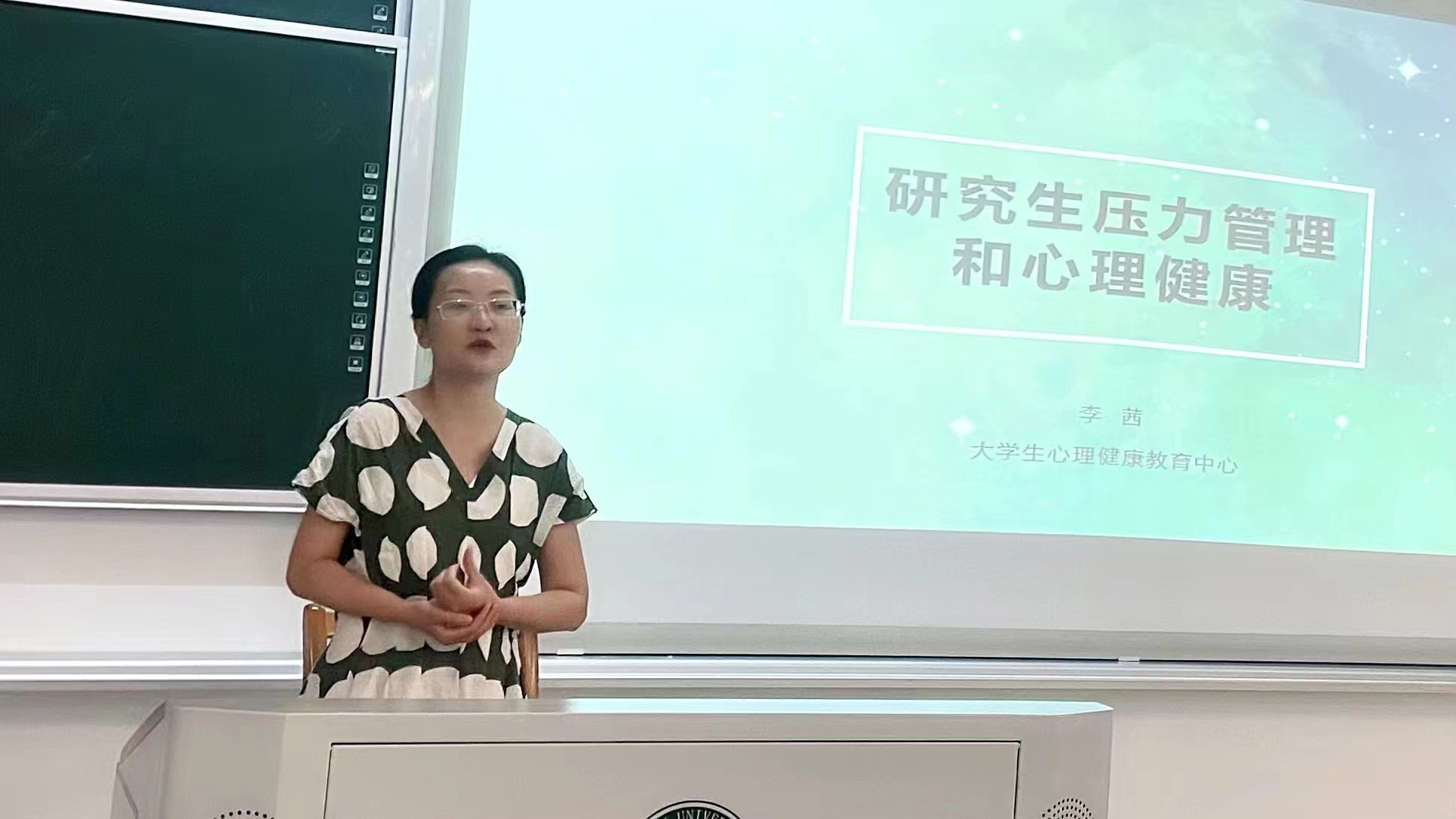 随后,心理中心李茜老师作心理健康主题报告。李老师围绕“压力管理”这一主题,从研究生日常压力来自哪里、影响压力强度的心理因素与外力因素以及如何进行压力管理三个方面,细致入微又生动有趣地针对研究生学习生活的具体情况进行具体分析,提出科学的建议,提醒同学们加强对自身心理健康的关注。