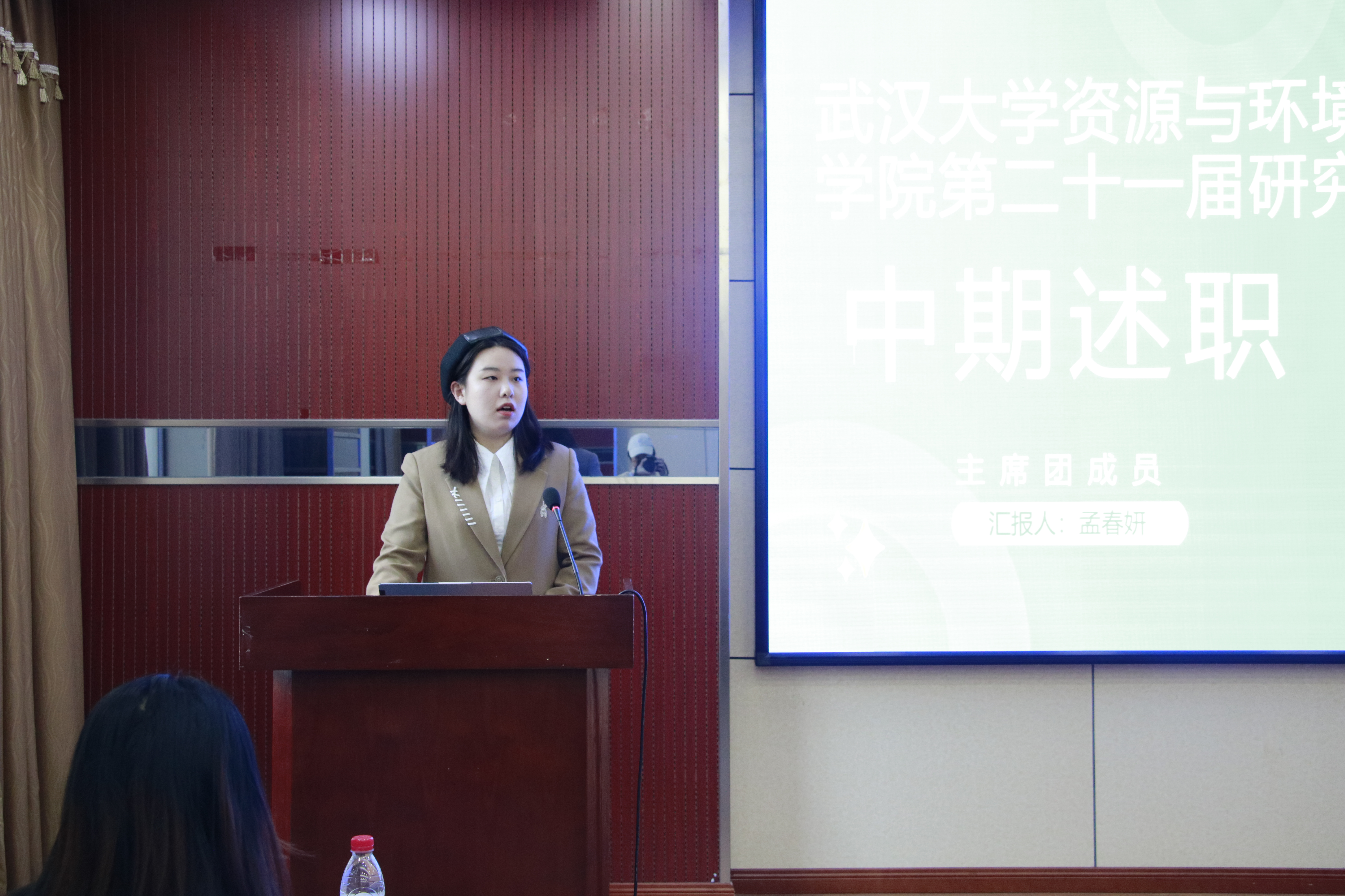 第二十一届研究生会中期述职大会在220会议室顺利举行,以期进一步提升研究生会工作规范化,完善研究生会的日常工作流程,更好搭建研会服务平台。学院党委副书记马丽华老师,团委副书记、研究生辅导员梅菲老师,研究生会常任代表委员、非研会认知学生代表以及研究生会骨干共同参与本次中期述职大会。会议由组织部负责人郝梦媛同学主持。