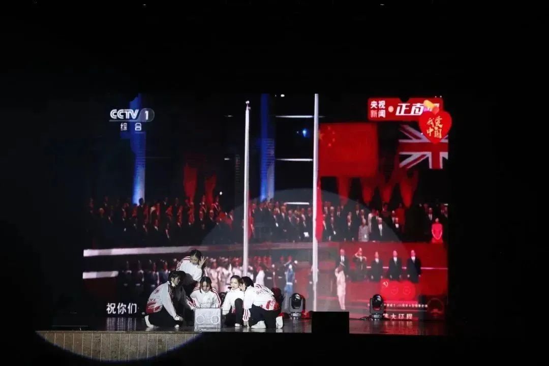 队伍第二个上场,开场时舞蹈队员们有序进场,快速准确地站在了指定位置,音乐一响起,整齐有力的开场动作让观众们眼前一亮。舞蹈整体分为四段,从受压迫到胜利,展现了浓浓的爱国情怀。每段舞蹈衔接顺畅,节奏顿挫相间,元素丰富多彩,给评委与线上观众带来了很强的视觉冲击,队员们情绪投入,表情生动,舞蹈队形变换丰富而有层次,爆点不断的动作将表演推向高潮,现场观众不断欢呼。最后,整齐划一的“祖国统一,民心所向,心中红星,献礼中华”响彻大活,为整个舞蹈画上圆满句号。