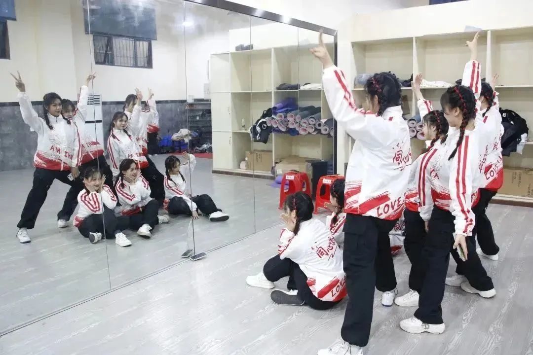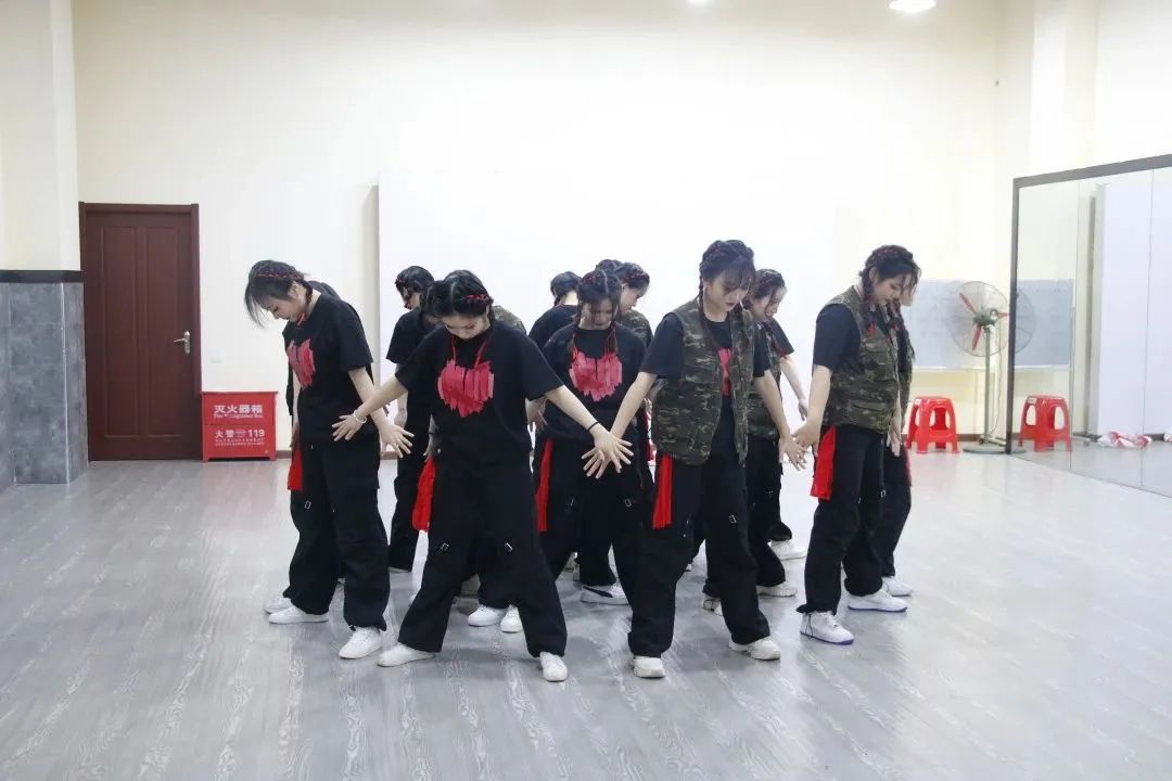 参加本次大赛的同学们都在持续高强度的训练下牺牲了自己的休息时间,有人承担着课业压力,有人克服着工作焦虑,有人克服着身体伤病,为了当时的承诺与热血、呈现完美舞台的执着,付出了很多精力与时间。队伍中零基础的成员为了跟上集体的节奏,额外在寝室、实验室加练,只为呈现更好的作品。比赛当天,参赛的同学们早早集合,井然有序地开展赛前准备工作,对照彩排视频寻找自身问题,争分夺秒地练习。