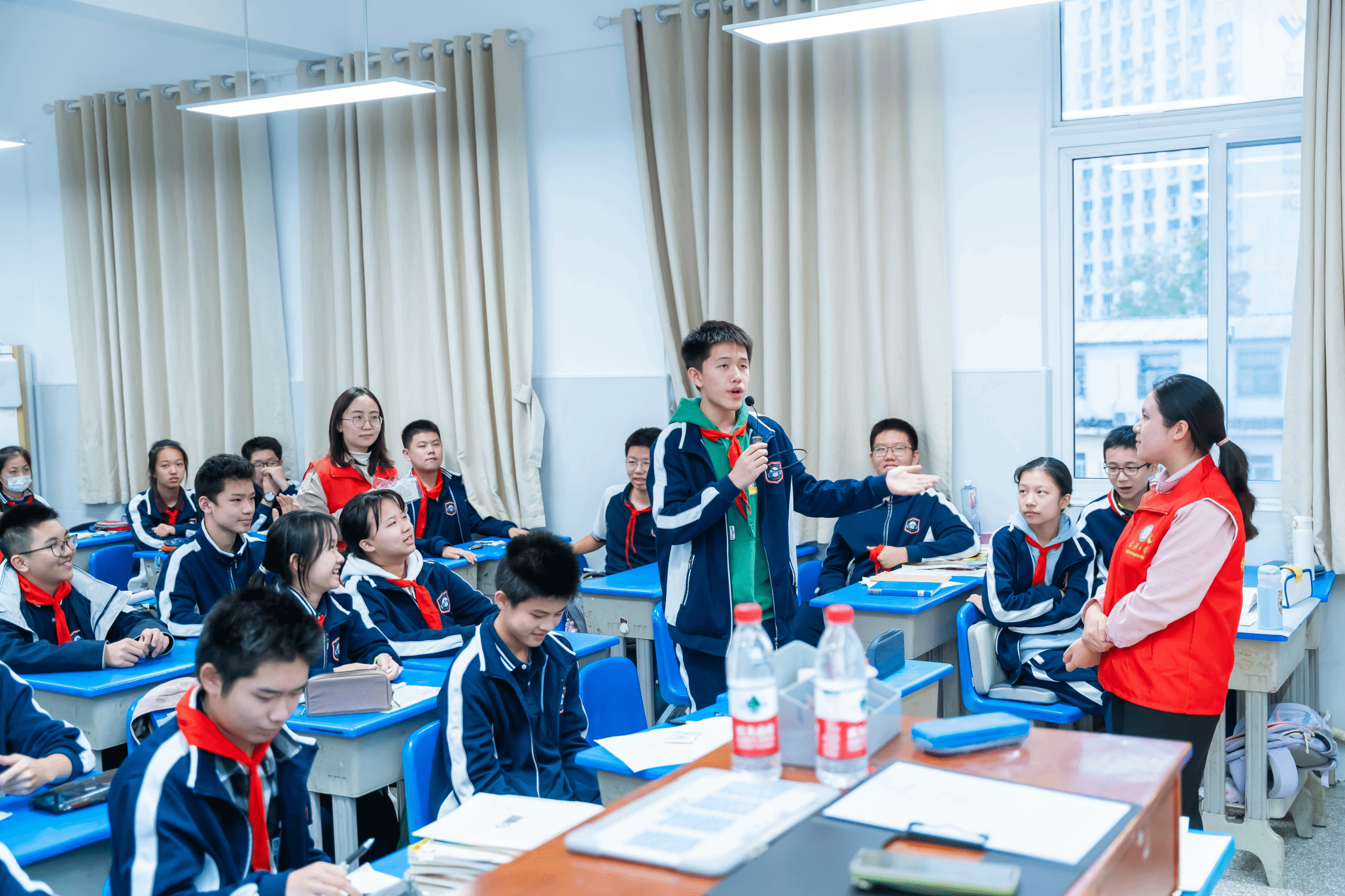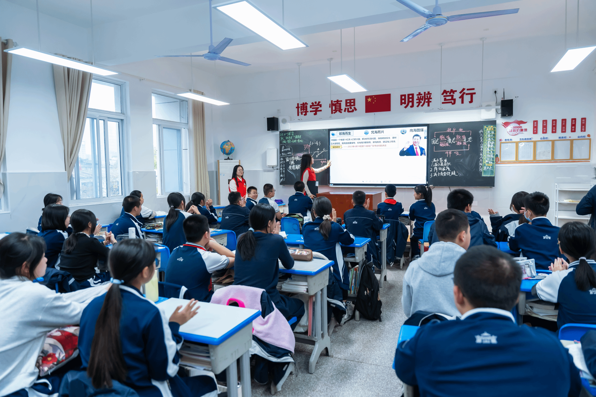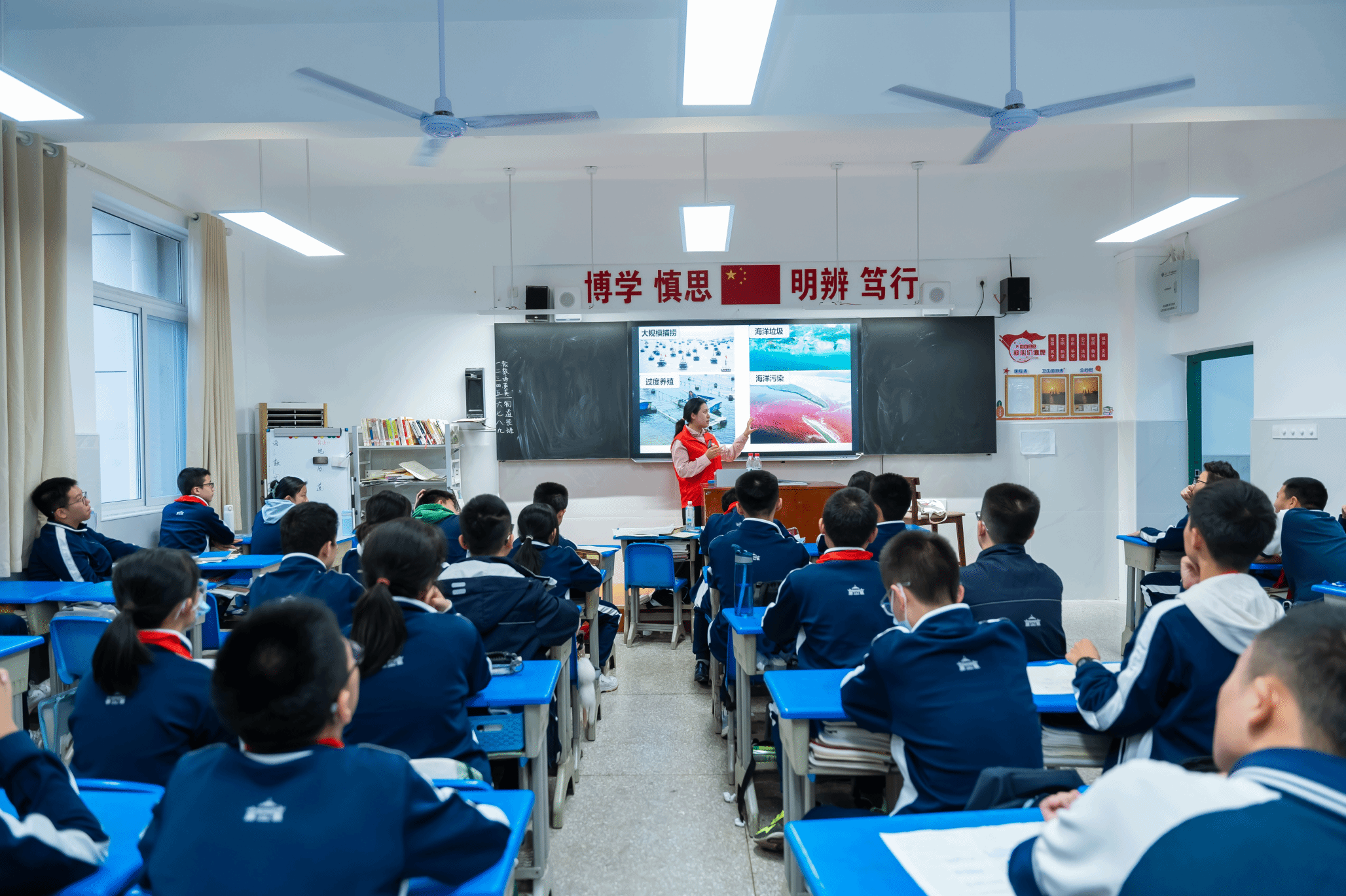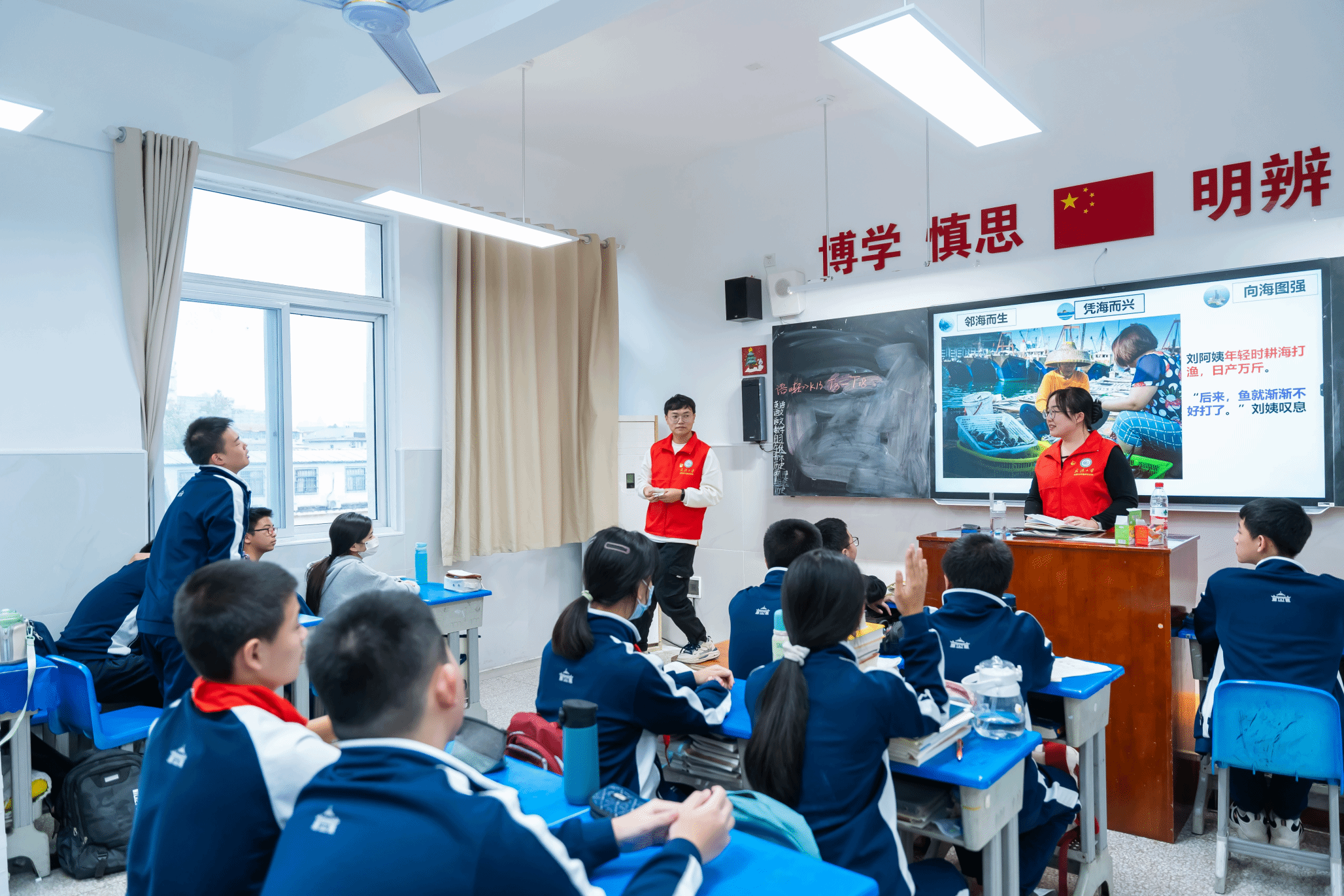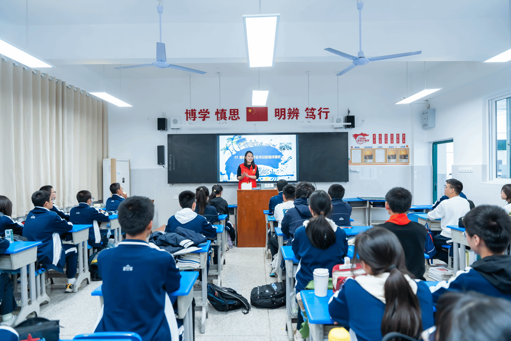 附属外语学校八年级的12个班级,为540余名初中生讲解海洋知识,引领大家理解海洋强国战略的意义,激发中学生对科技前沿的兴趣。课堂上,学院的研究生党员们化身12个班级的讲师,从临海而生、凭海而兴、向海图强三个角度出发,对海洋知识进行了生动地讲解,帮助同学们构建知识框架。