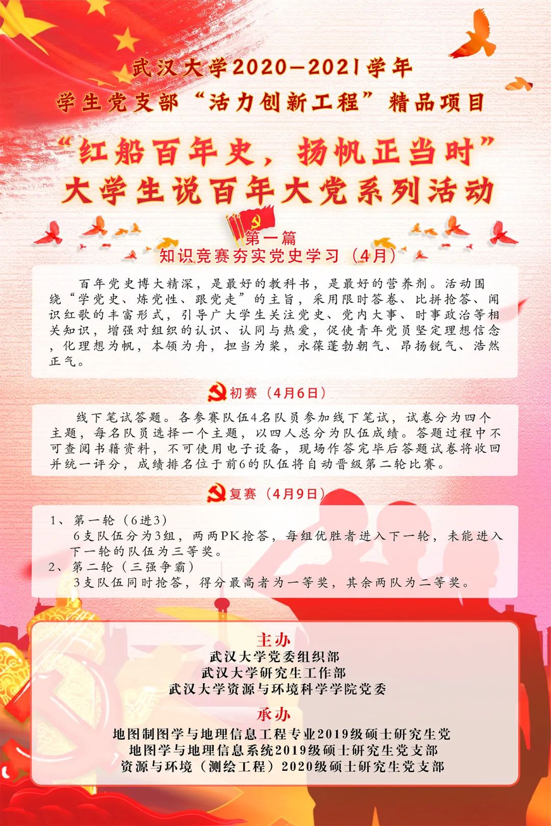 2020-2021年学生党支部“活力创新工程”精品项目“红船百年史,扬帆正当时”大学生说百年大党系列活动第三篇——“以专业所长述百年大党”正式启动。