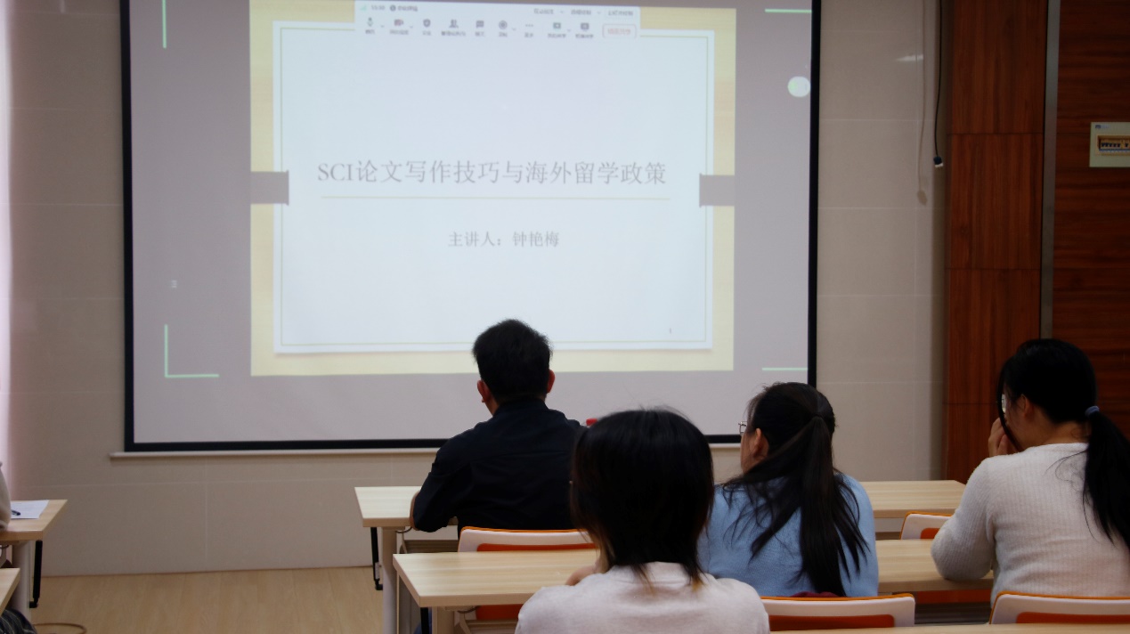 的学习和海外留学经历。钟博士的分享主要分为两个部分:“SCI论文写作技巧”和“海外留学政策”。她在分享中强调,论文不仅是研究成果传播与获得认可的关键途径,也是评估个人科研能力的重要标准。在此基础上,她还分享了自己成功申请中国留学基金管理委员会(CSC)公派联合培养项目的宝贵经验,并介绍了在海外深造期间所取得的学术成果。