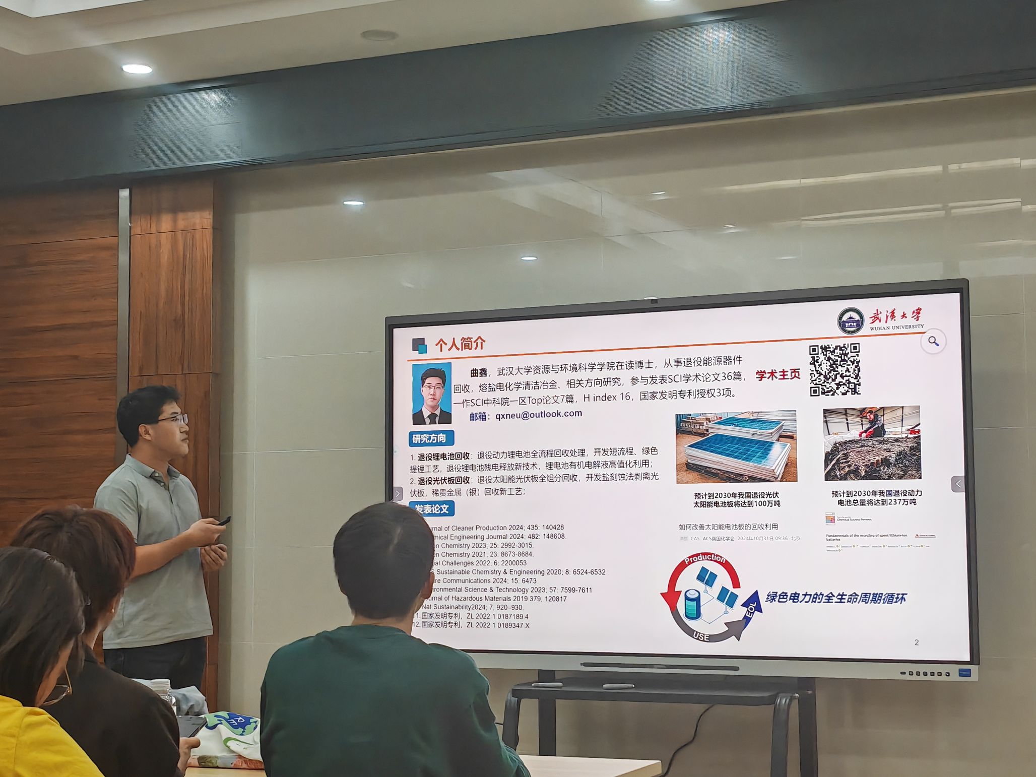 曲鑫博士专注于退役能源器件回收和熔盐电化学清洁冶金的研究,他从实践角度出发,详细讲述了实验操作的技巧和常见问题的解决方案。曲博士指出,实验不仅仅是结果的追求,更是过程的探索。他分享了自己在实验设计中的一些实用经验,比如如何合理安排实验步骤、选择合适的材料以及保持实验环境的稳定性。同时,他也强调了论文撰写的重要性,介绍了如何构建论文结构、撰写清晰的引言与讨论部分,以及有效的数据呈现方法。他还提到英文文献阅读是提高论文写作能力的重要途径,并介绍了论文写作中常见的时态语态错误问题。此外,论文的整体逻辑与上下文衔接、格式等细节问题也是定稿前需要仔细检查的。