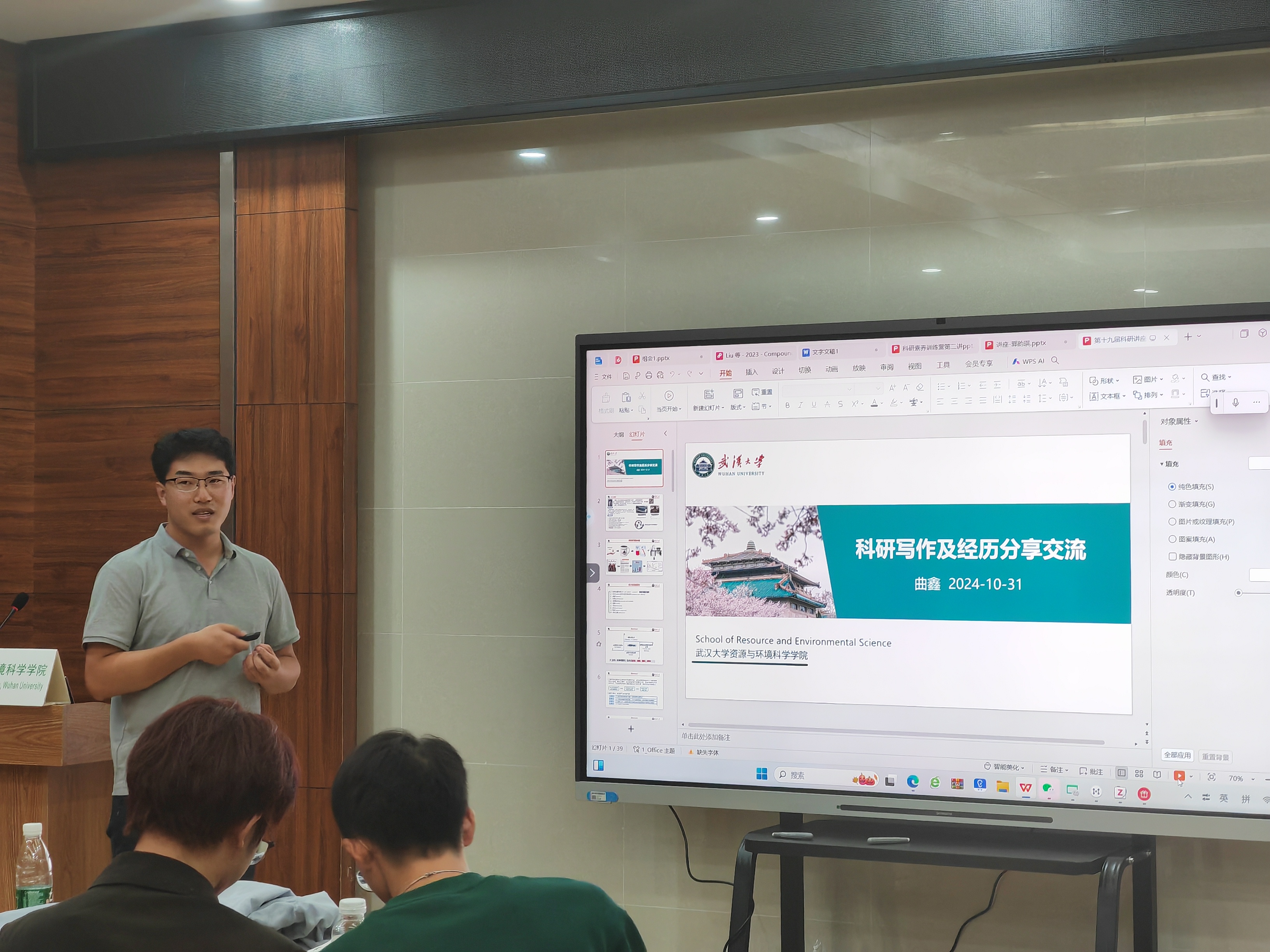 资环学院土地资源管理专业博士研究生郭韵琪和环境工程专业博士研究生曲鑫。两位嘉宾以“探索科研兴趣,聚焦论文写作”为主题,从不同的角度进行了分享,为初入科研领域的同学们奉献了一场丰富的知识盛宴。