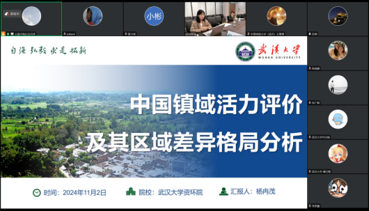 2024级硕士杨冉茂作了题为“中国镇域活力评价及其区域差异格局分析”的报告。该研究通过对全国镇域活力进行系统性评价,以了解镇域尺度下的微观发展现状和区域差异,从而实现促进全国镇域资源的合理配置、优化宏观政策调控的目标。报告基于“推进城乡融合”的时代背景,以人口、经济、社会、交通、生态五大子系统构建了中国镇域活力评价指标体系,结合多源数据,通过多种数学模型和方法综合评价中国镇域活力,进一步运用空间自相关、基尼系数等方法探究其分布格局、空间聚集类型及区域差异,最后提出分区方案及管控措施。