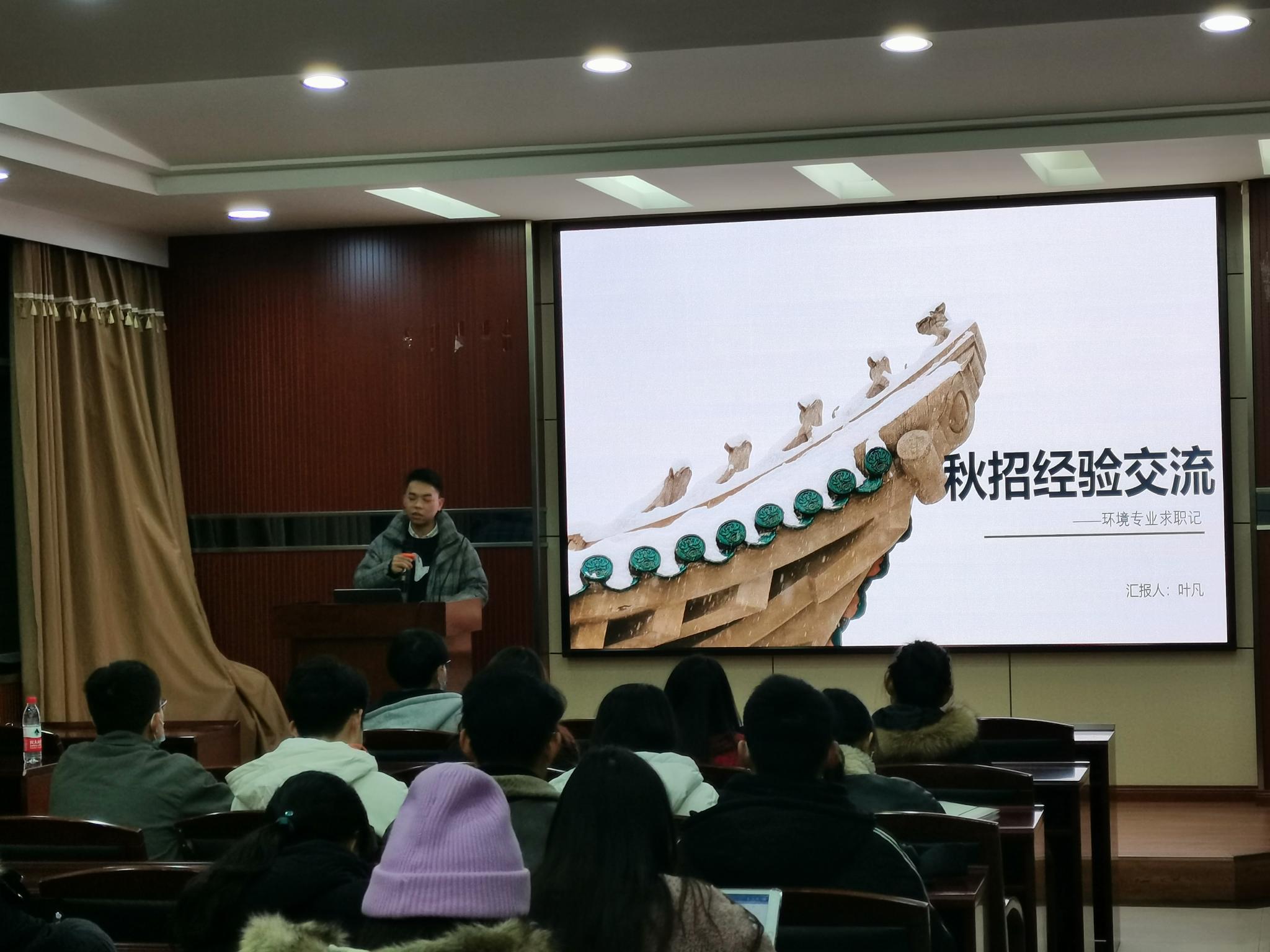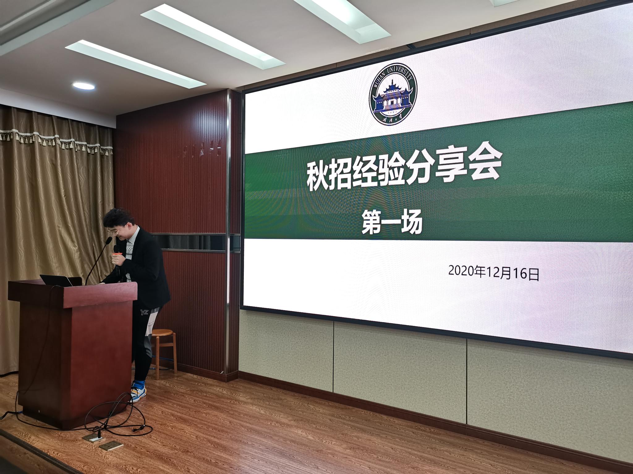 2020年12月17日晚上19时,第一场秋招经验分享会在院办220准时开始。分享会主要划分为嘉宾经验分享、同学们提问以及现场抽奖3个环节。