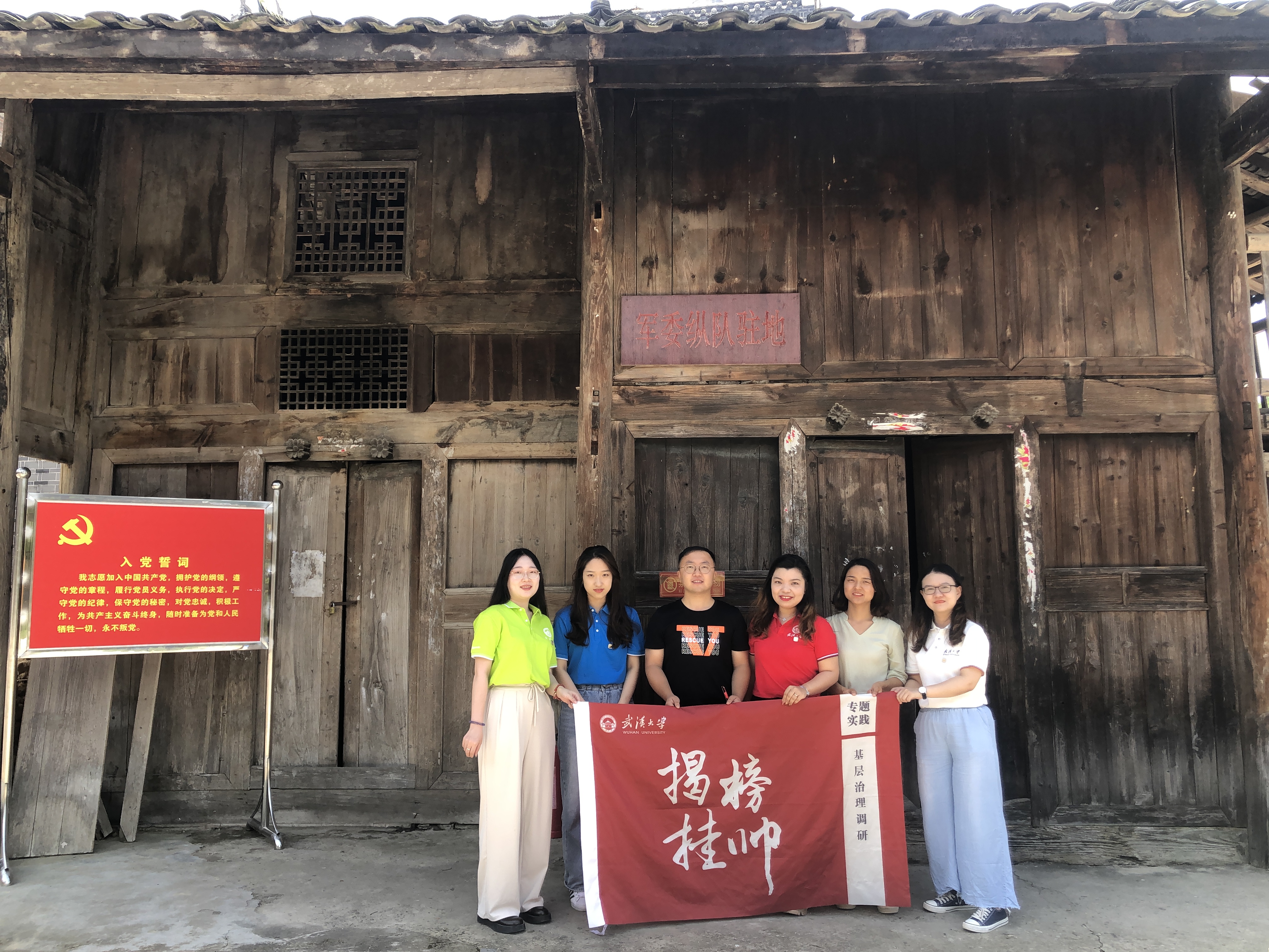 岗党略村党总支书记刘忠海带领实践队参观了红军长征中央纵队驻地旧址。偏寨红军长征中央纵队驻地旧址位于施洞镇石家寨石定录老宅。1934年12月,毛泽东领导的右路军中央纵队长征经过施洞,先后三天以石定录老宅作为行营住宿与办事处。现旧址内留下部分红军运物和部分红军标语,记录了红军长征经过台江时的艰难场景,具有较高的历史价值和社会研究价值。