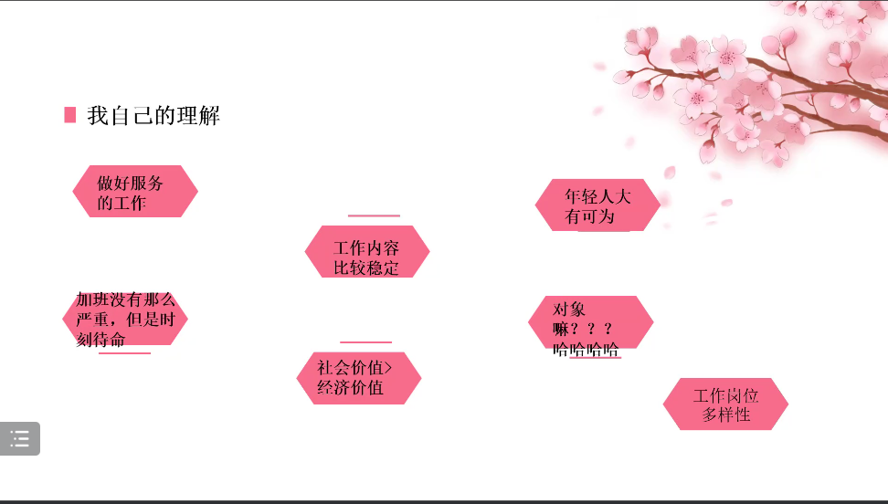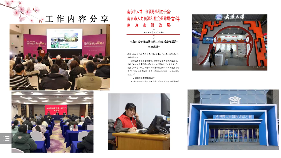 随后,张莹师姐介绍了她在南京市人社局的工作内容以及平时的工作状态,不同于大家常规理解的选调生的工作,师姐结合了南京地区选调生的培养政策,更偏向于介绍机关单位的相关工作。在她看来,社会大众给予公务员的传统标签,并非都是十分准确的,自己的工作经历告诉她,公务员的工作岗位具有多样性,并且其创造的社会价值往往大于经济价值,虽然公务员的工作比较稳定,但她坚信,我们年轻人一定可以在这些岗位上守正创新,大有可为。