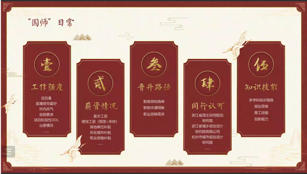 活动邀请到现就职于济南市勘察测绘研究院的胡正超师兄、就职于南京市人社局的张莹师姐、就职于腾讯微信小程序中心的胡振宇师兄、就职于广州市城市规划勘测设计研究院的唐茉师姐以及就职于浙江省国土空间规划研究院的周璐瑶师姐,他们从日常工作、所在岗位特点及相关求职和初入职场的建议等方面,向大家做了分享。