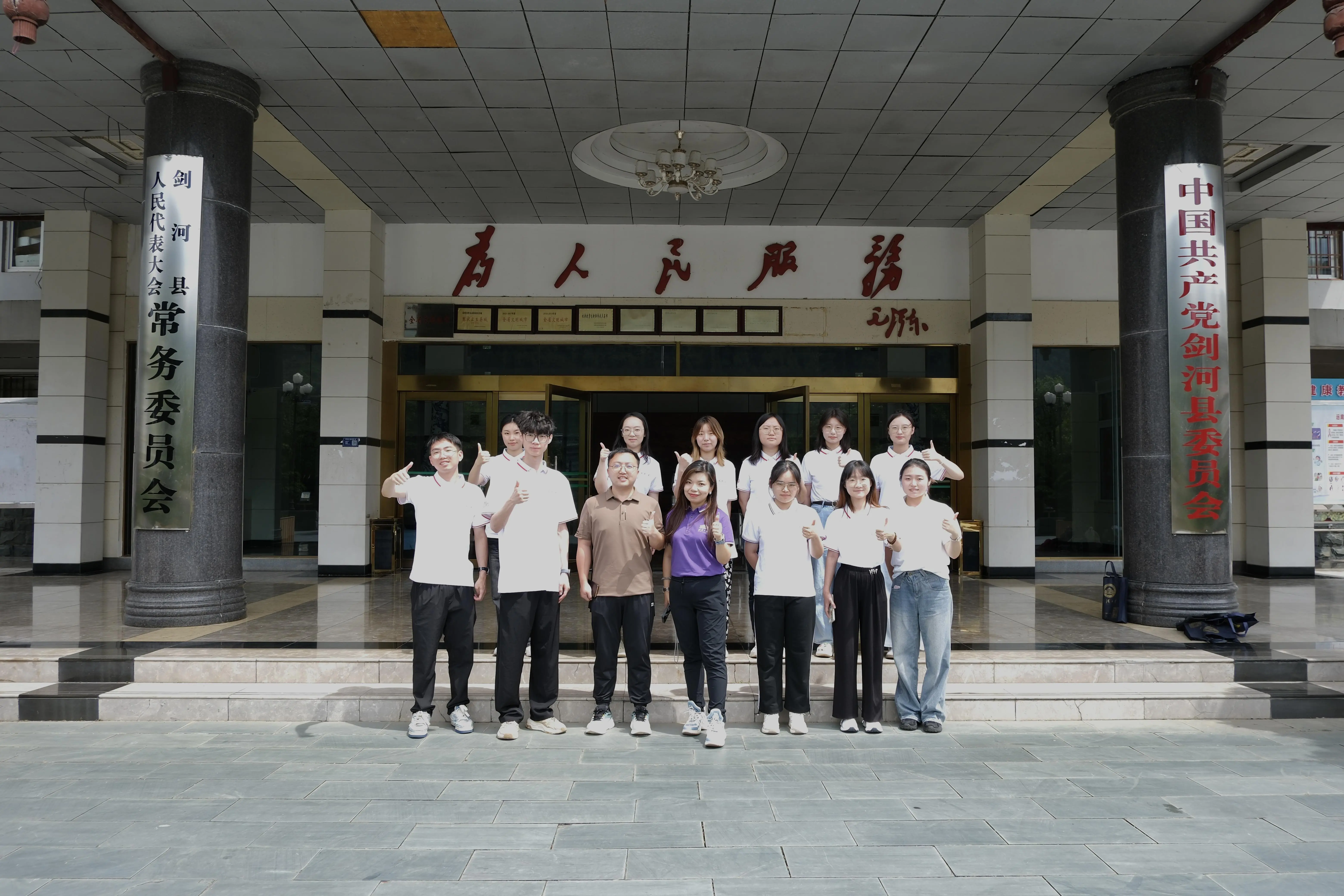 7月15日下午,实践调研团队成员在校友舒俊蛟镇长的带领下参观了剑河县太拥镇政府,实地了解了政府机构职能运作情况,并就乡村振兴与发展、乡村教育、乡村人口结构与产业发展等问题开展了交流。
