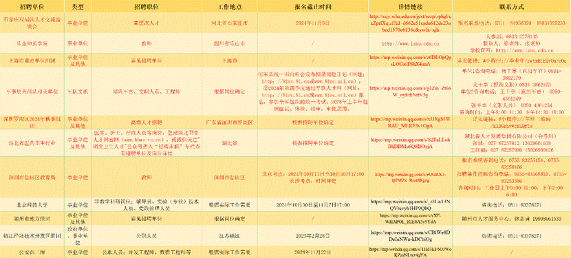 (公务员考试、公职类中红色文字为此前统计有确切截止日期且暂未逾期的招聘信息,黑色文字为新增信息;企业类为新增信息。)