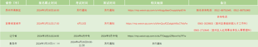 (公考类、公职类中红色文字为此前统计有确切截止日期且暂未逾期的招聘信息,黑色文字为新增信息;企业类为新增信息。)