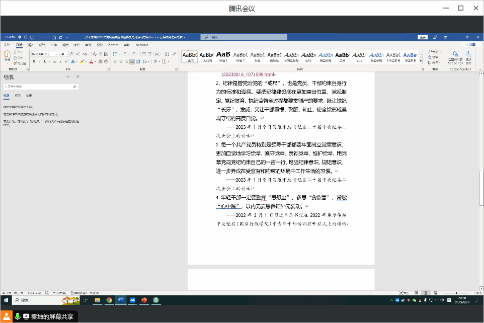 2023年9月28日晚20:00,地理信息与地图科学系研究生第六党支部组织生活会暨支部委员调整大会于腾讯会议室线上召开。会议主要议程有以下两项:一是支部支委调整,增补组织委员;二是召开组织生活会,以“加强纪律教育 培养纪律自觉”为主题,组织支部党员参加纪法知识测试,并进行党风廉政建设宣传教育。本次会议由支部书记秦坤同志主持,支部党员参与此次会议。
