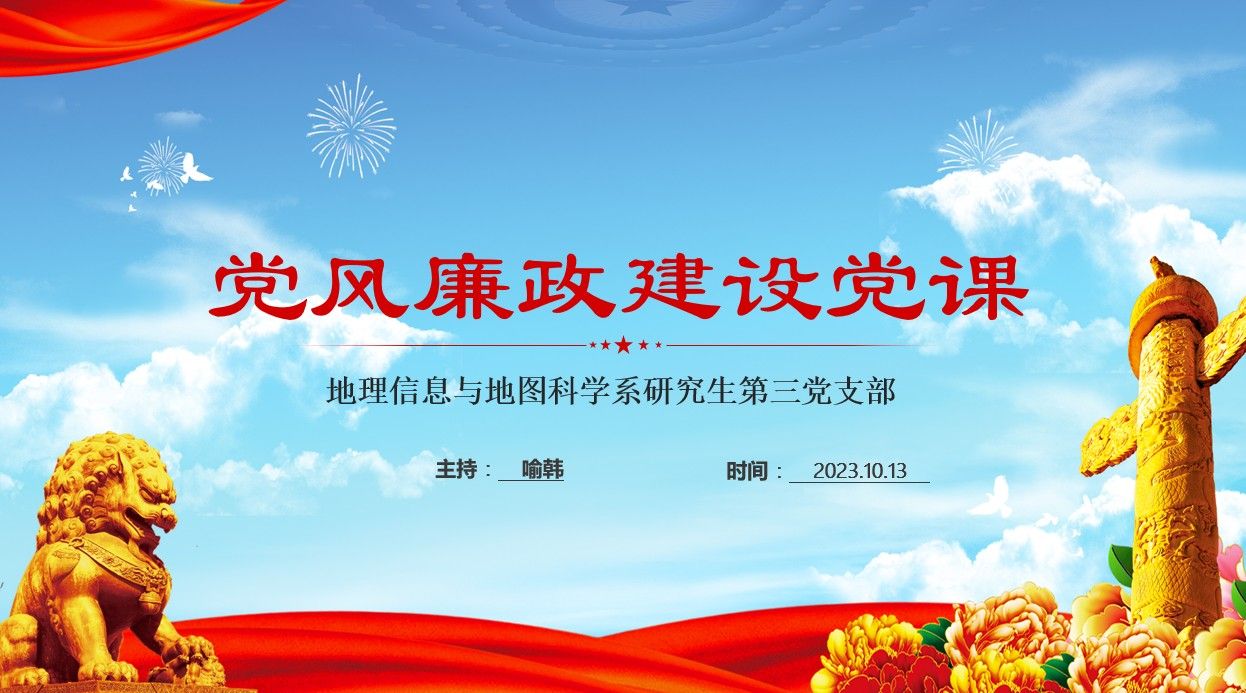 2023年10月13日晚上20:00,于电脑城429会议室,地理信息与地图科学系研究生第三党支部举行“党风廉政建设宣传教育”党日主题活动。本次会议由支部书记喻韩同志主持。应到正式党员30名、预备党员5名,实到会正式党员20名,预备党员4名。