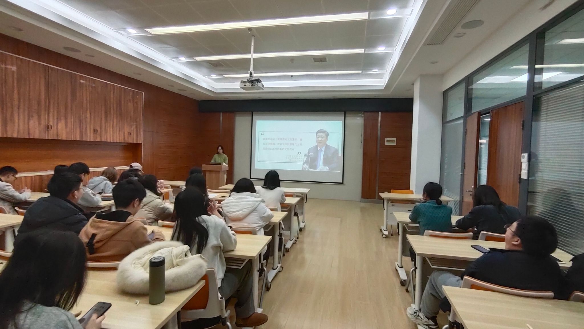 2023年11月28日下午16:40,于电脑城429会议室,地理信息与地图科学系研究生第三党支部举行预备党员转正支部大会暨“感悟思想伟力,感受文化魅力”党日主题活动。本次会议由支部书记喻韩同志主持,支部党员、预备党员及入党积极分子参与此次会议。本次会议应到正式党员30名,实到会正式党员25名,有表决权的到会人数超过应到会有表决权人数的半数,符合规定人数。