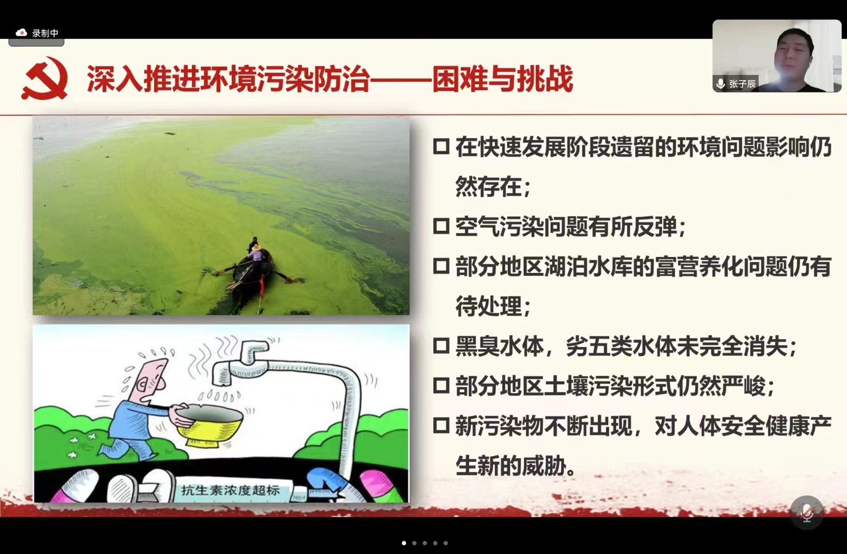 张子辰同学特别强调,“开展新污染物治理”是我们国家最新提出的方案,并建议与会党员积极了解治理新污染物的最新理念方针政策。