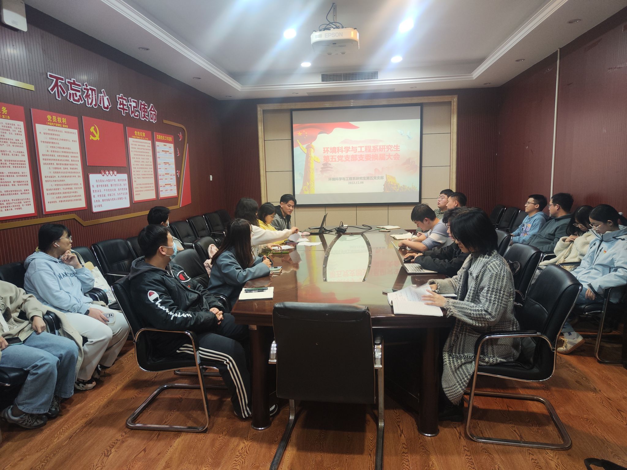 环境科学与工程系研究生第五党支部于学院504会议室召开支委换届大会。本次大会由支部书记王子任同志主持,本次会议21名与会成员中,正式党员18人,具有表决权的正式党员15人,到会人数超过应到会有表决权人数的半数,符合规定人数。