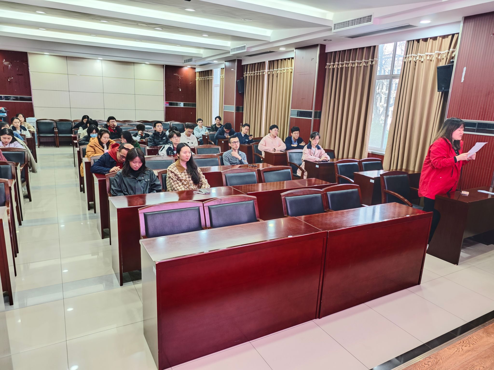 220会议室召开接收预备党员支部大会。本次会议由党支部书记张博轩同志主持。本次会议应到正式党员34名,实到正式党员25名,有表决权的到会人数超过应到会有表决权人数的半数,符合规定人数。
