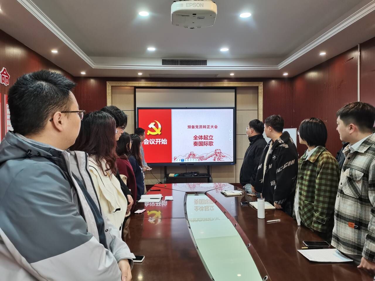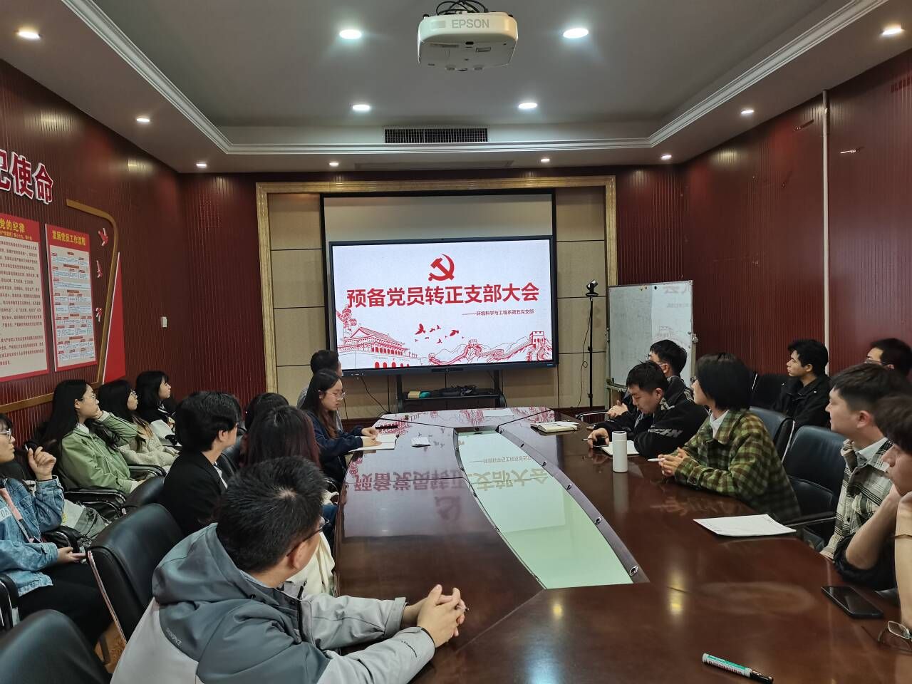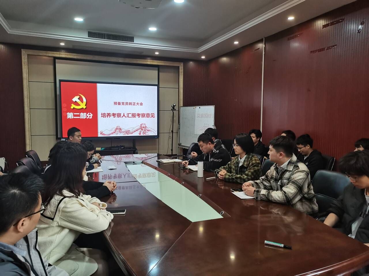 504会议室开展了接收预备党员支部大会暨主题党日活动。本次会议由党支部书记王涵植同志主持,共有20名同志参与本次会议。其中具有表决权的到会人共有17人,超过应到会有表决权人数的半数,符合规定人数。