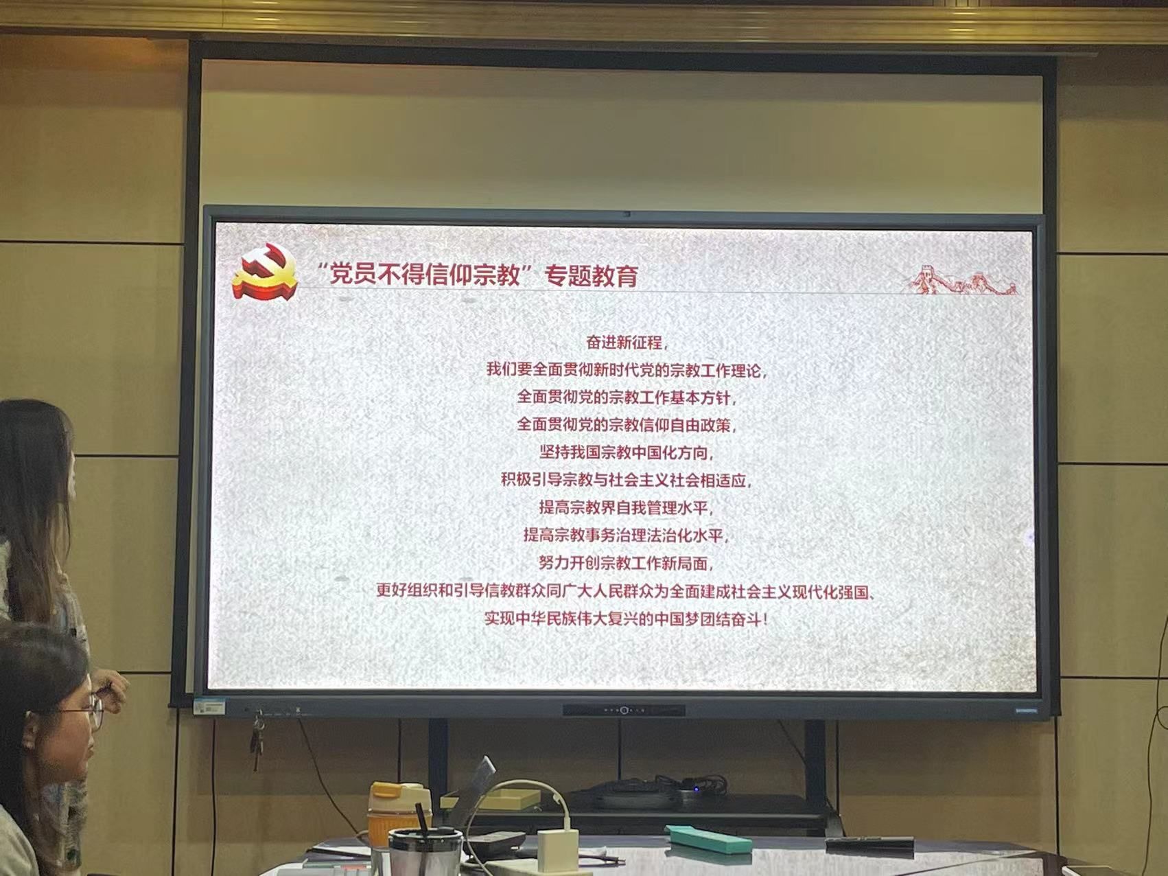 504会议室开展了“党员不得信仰宗教”专题教育及2024年全国两会精神学习主题党日活动。本次会议由党支部书记胡艺川同志主持,共有19名同志参与本次会议,符合规定人数。