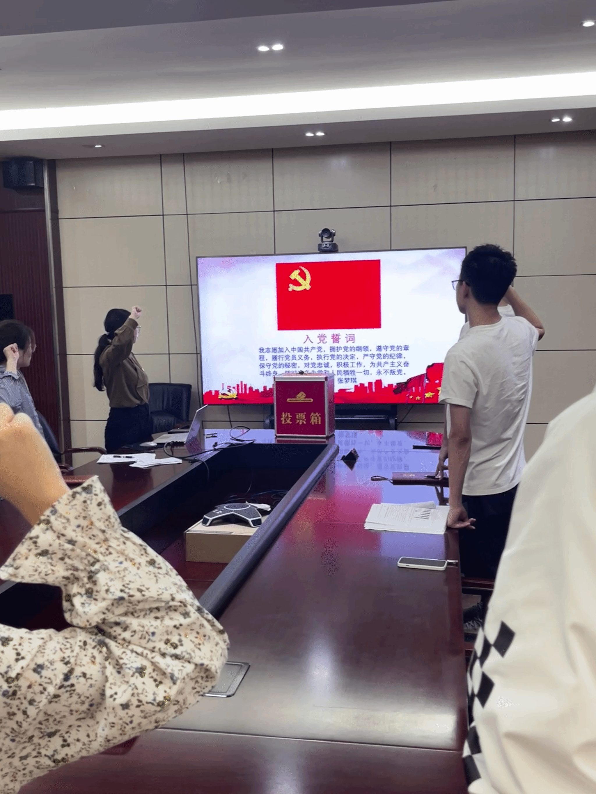 会议第二项,讨论接收李雨翰和吕昂两位同志为中共预备党员。首先,两位同志分别就自身情况、对党的认识、入党动机、申请入党历程、现实表现等向党组织进行了汇报。接下来,由入党介绍人依次介绍有关情况:两位同志均在政治思想学习和个人修养提升等方面积极向党组织靠拢,符合党员标准。刘心悦同志代表支委会报告审查情况:李雨翰和吕昂两位同志发展流程规范,政审合格,符合入党条件。紧接着,与会党员发表意见,正式党员进行无记名投票表决,同意18票,反对0票,弃权0票。由党支部书记张梦琪宣读大会决议,同意接收李雨翰和吕昂两位同志为预备党员。随后新党员同志表态,表达了时刻向党组织看齐,严格要求自我的坚定信念。