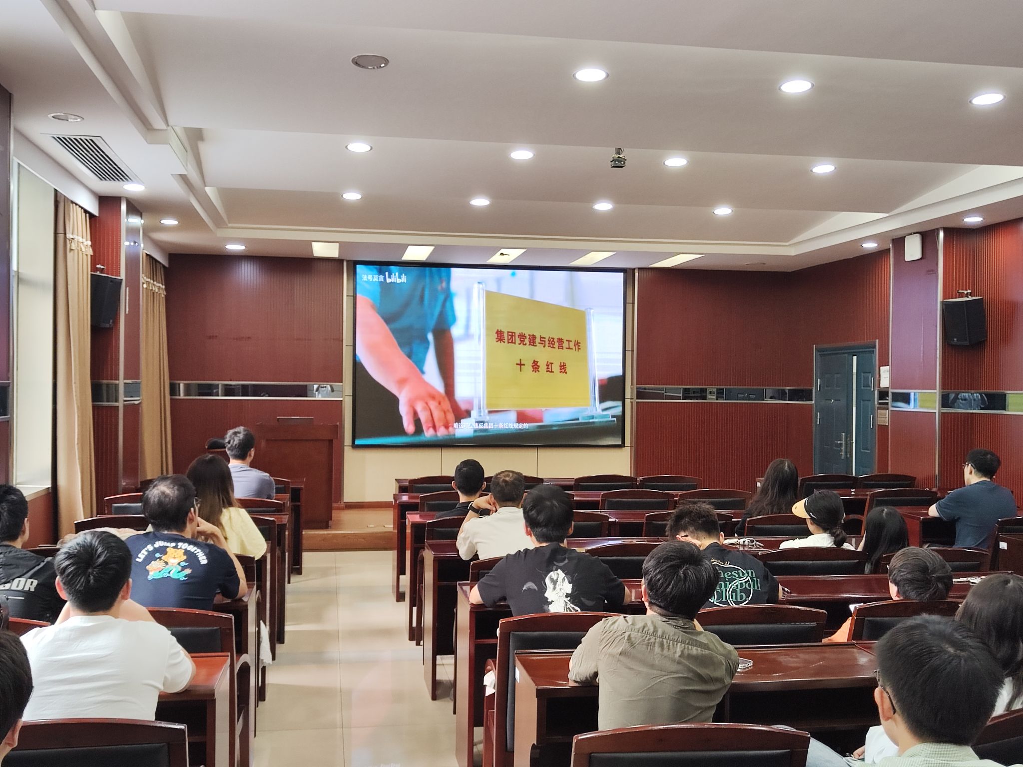 会议第二项,党支部书记张博轩组织党支部全体成员观看党纪学习教育专题纪录片。