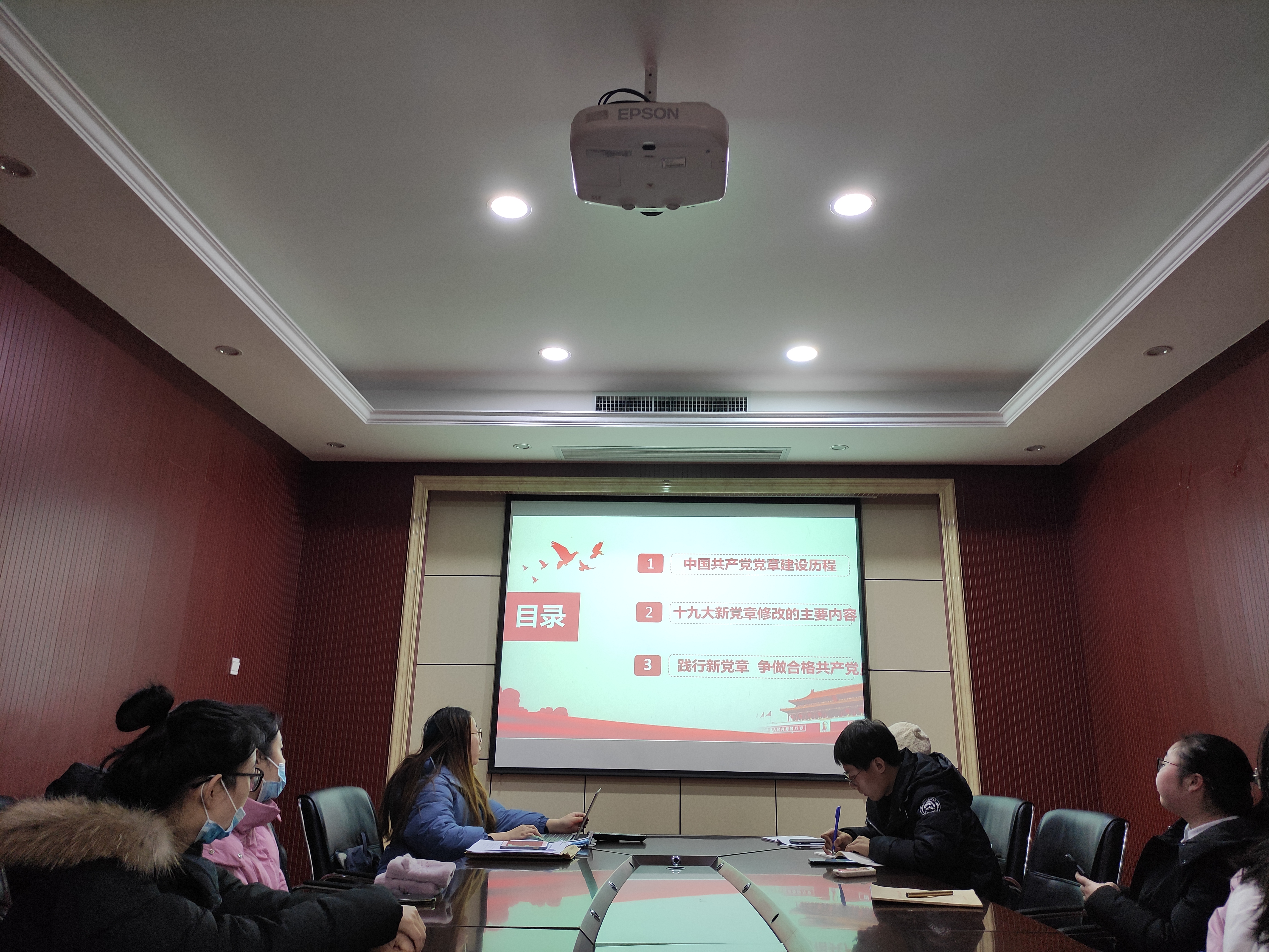 转正大会结束后,支部书记主持召开了学习党章主题党日活动,组织各位党员同志、入党积极分子和发展对象学习党章并进行交流探讨。学习内容包括以下三个方面:(1)中国共产党章程建设历程,回顾党的一大到十九大对党章的具体建设内容;(2)十九大新党章修改的主要内容和修改意义;(3)践行新党章、争做合格共产党员,当前新形势下合格党员的标准即习近平总书记提出的“四讲四有”,讲政治有信念、讲规矩有纪律、讲道德有品行、讲奉献有作为。在学习过程中,部分党员出现了理论知识掌握不够牢固的情况,最后支部书记对学习内容作出总结:学习党章,就要坚定中国特色社会主义共同理想,做到思想上入党、组织上入党、言行上入党;践行党章,要按照新标准,做“四讲四有”的合格共产党员,并希望各位党员同志加强政治理论学习,不断提高政治素养,真正以实际行动践行党章。