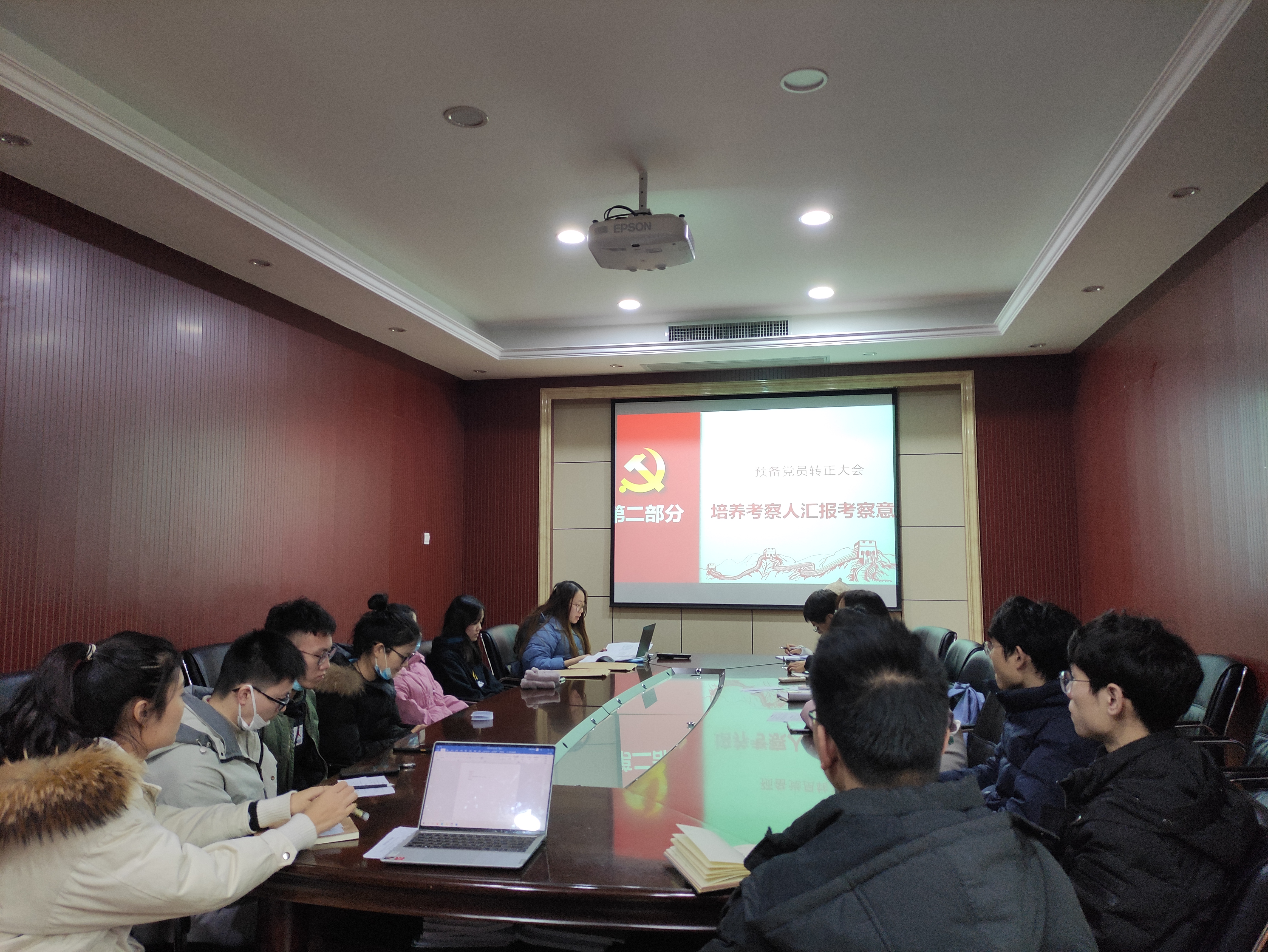 接下来,与会党员发表意见,对辛成同志和顾滢同志能否转正进行充分讨论,客观评价了两位同志的优缺点。包雨睿同志指出辛成同志工作认真、乐于助人,为人热情大方,作风正派,但需要注意自己的身体健康状况,认为辛成同志已符合正式党员的要求。李栩滨同志指出顾滢同志思想积极向党组织靠拢,时刻以一名党员的标准严格要求自己,工作认真负责,学习勤奋刻苦,生活习惯良好,但需要加强与班级同学的沟通与交流,认为该同志已符合正式党员的要求。