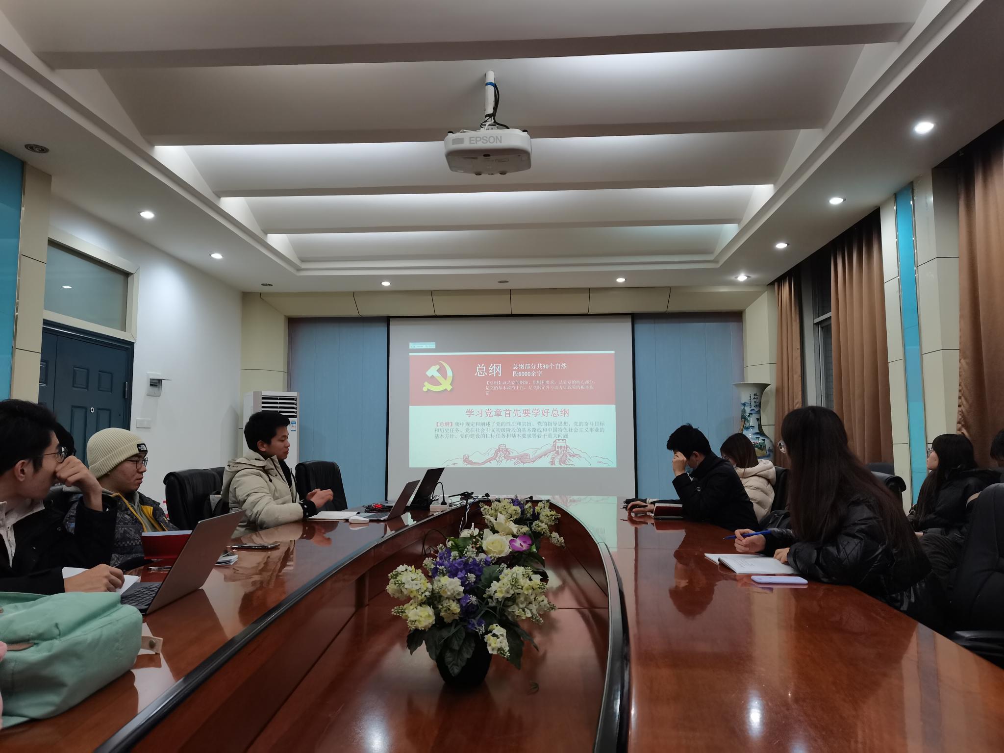 2020年12月14日晚上7:00,环境系第五党支部在学院301办公室组织开展了学习解读《中国共产党章程》主题党日活动,本次到会党员(含预备)16名,积极分子8名。不忘初心方能砥砺前行,激励各位同志自觉担负起为党和人民的事业奋斗终身的重任。