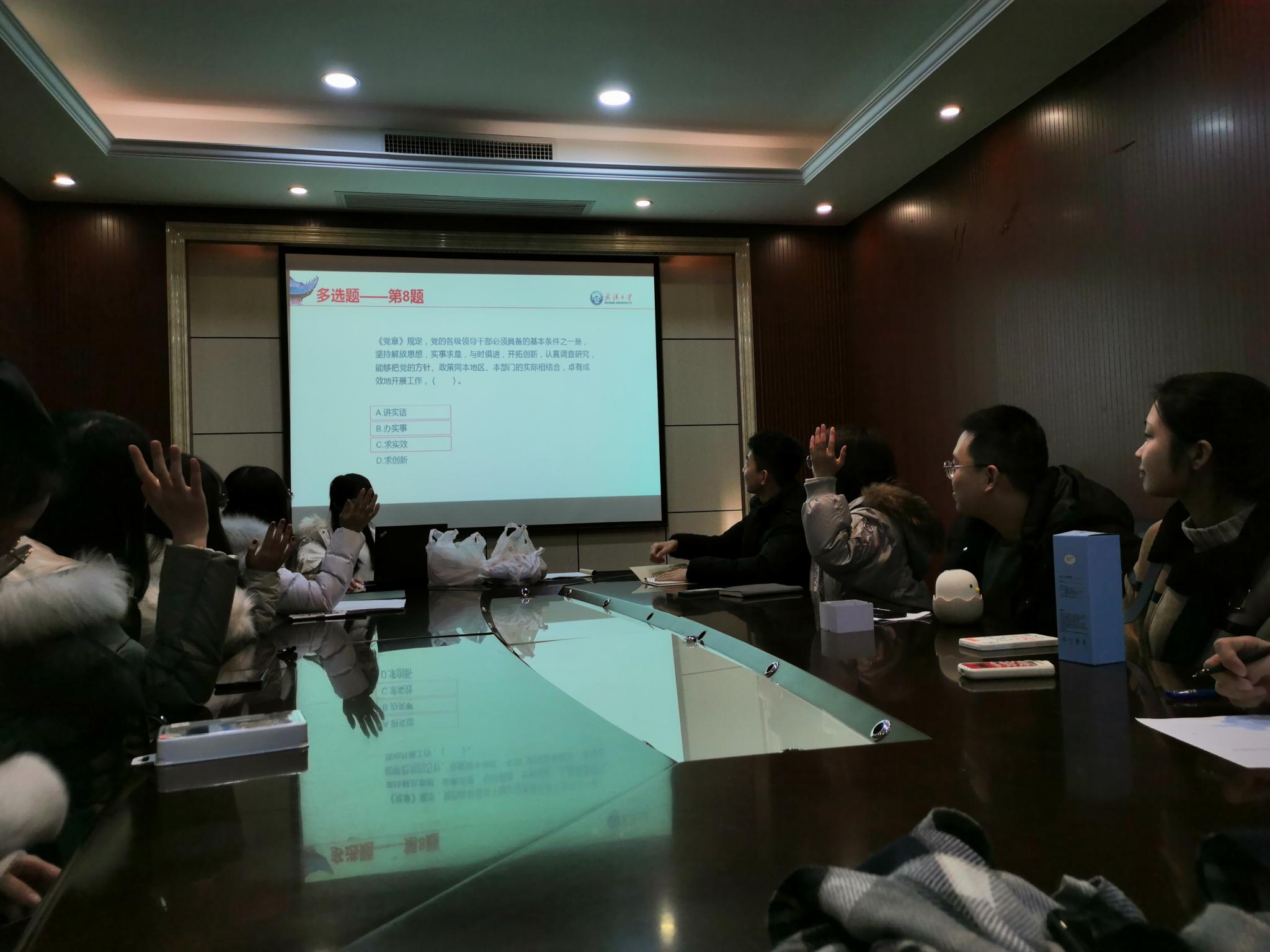 本次活动由纪律委员罗璇同志主持,杨文睿、王寅杰担任监票、计票员。罗璇同志宣布比赛规则,比赛正式拉开帷幕。各位同志积极踊跃答题,题目还未读完,就纷纷举手作答,可见支部同志充分学习党章、做好了充足了准备。