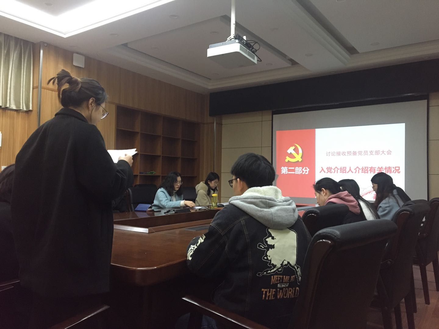 大会开始,郑凡和莫宇两位同志分别向党组织汇报自身对党的认识,入党动机,个人经历以及在校表现等;随后两位发展对象的入党介绍人向党组织介绍其在政治思想、学习、工作生活等情况。