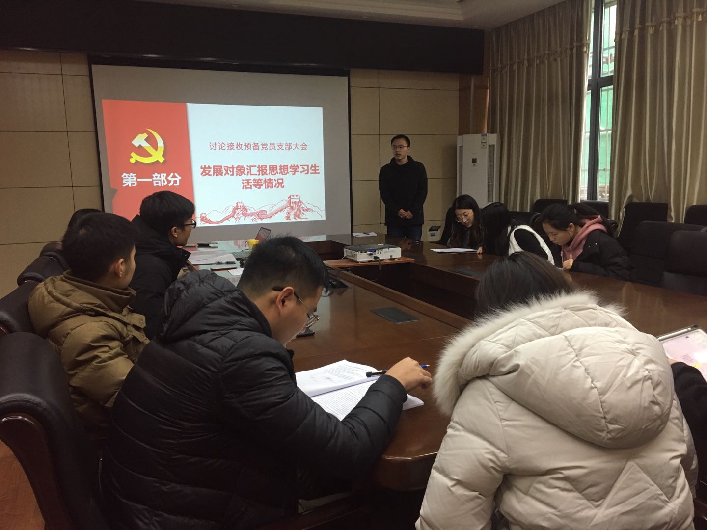 根据党支部发展党员工作计划,经上级党委预审同意,2020年12月11日下午14时,环境科学与工程系研究生第四党支部于工学部九教212会议室召开支部大会,讨论发展对象郑凡、莫宇两位同志的入党问题。同时,开展了关于党章专题学习的主题党日活动。会议应到人数31人,实到16人,其中正式党员14人,超过具有表决权的党员人数的半数,符合规定人数。